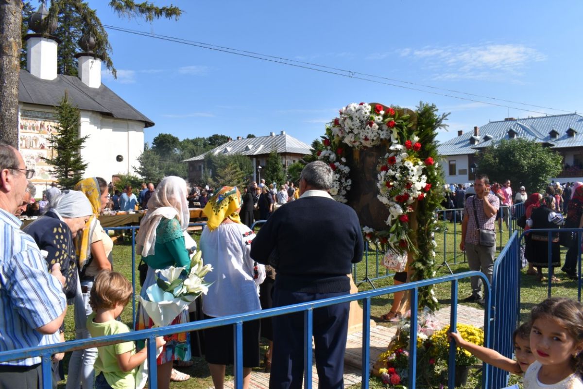 Zona din jurul lăcașului sfânt a devenit neîncăpătoare de la primele ore ale dimineții. Suprafețe de teren de pe care a fost recoltat porumb au fost transformate în parcări pentru sutele de autoturisme care s-au aliniat în șiruri lungi. Polițiștii și jandarmii dirijau mașinile pentru a fi evitate blocajele și astfel ziua de sărbătoare nu a fost umbrită de eventualii nervi ai șoferilor.