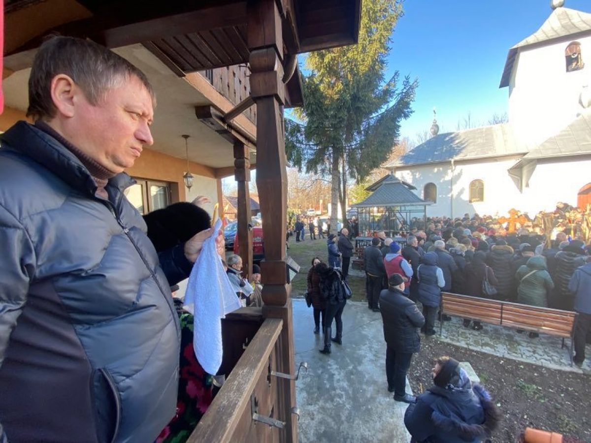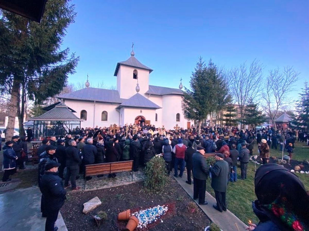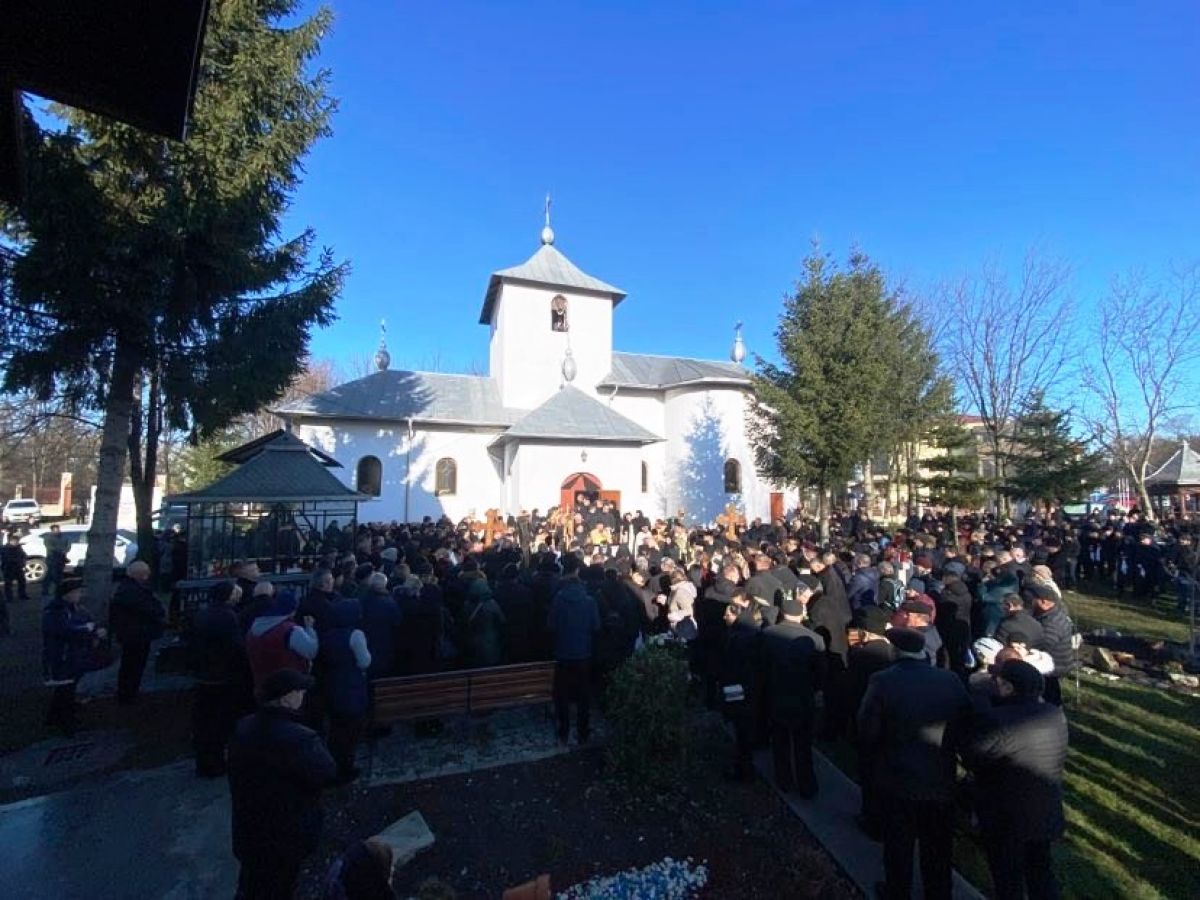 Un tremurat răzbate din glasul preotului, la doar câteva minute după ce părintele protopop Petru Fercal lăcrimase în fața catafalcului: