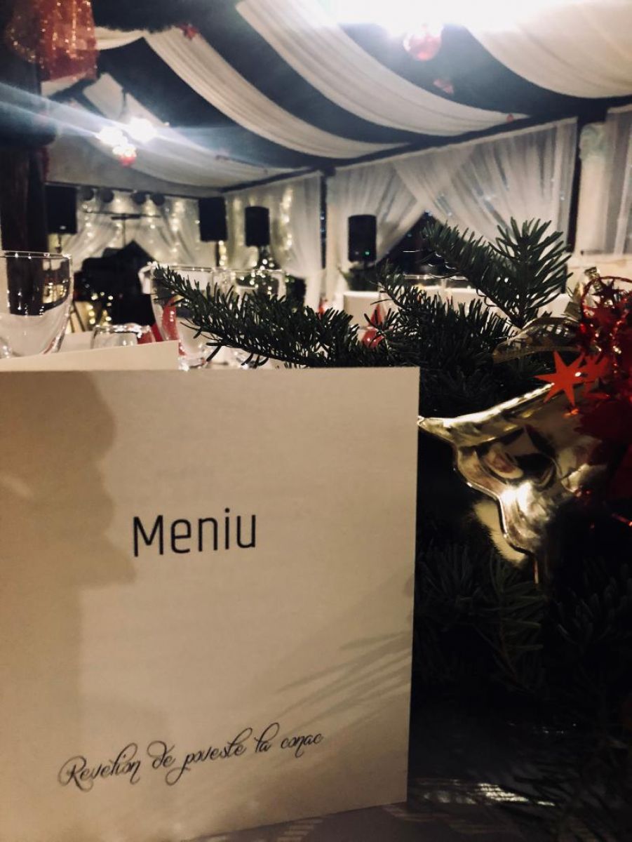 Ca în fiecare an, echipa de la conac, s-a mobilizat pentru a oferi invitaților preparate noi, gătite cu multă dăruire, de aici și complexitatea pieselor din meniu. Aperitivul rece a fost o adevărată pleiadă de gustări fine: pastramă de rață, terină din mușchi de vită, medalion din somon cu creveți, brânzeturi fine în mantie de fistic, foie-gras încoronat cu jeleu de vișine, legume cu spumă de năut și ceapă caramelizată.