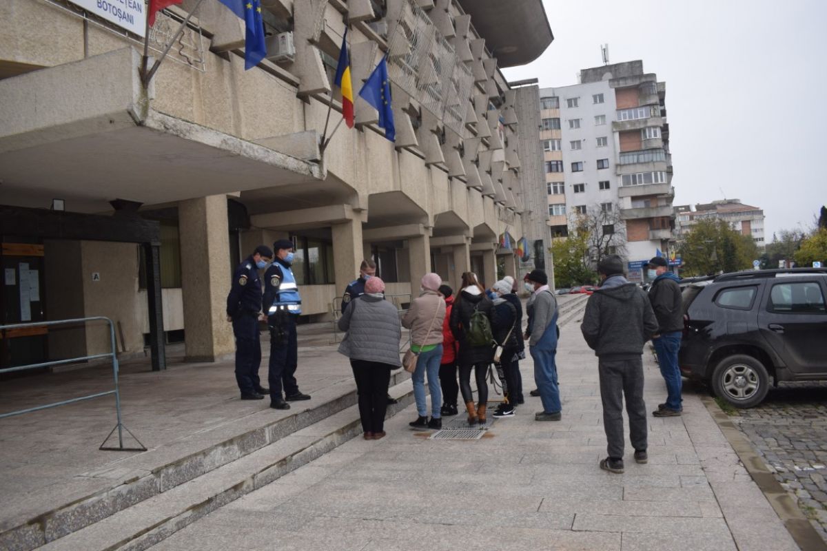 Zeci de comercianți din Piața Centrală și Piața Viilor au venit încă de la primele ore ale dimineții în fața Prefecturii Botoșani.