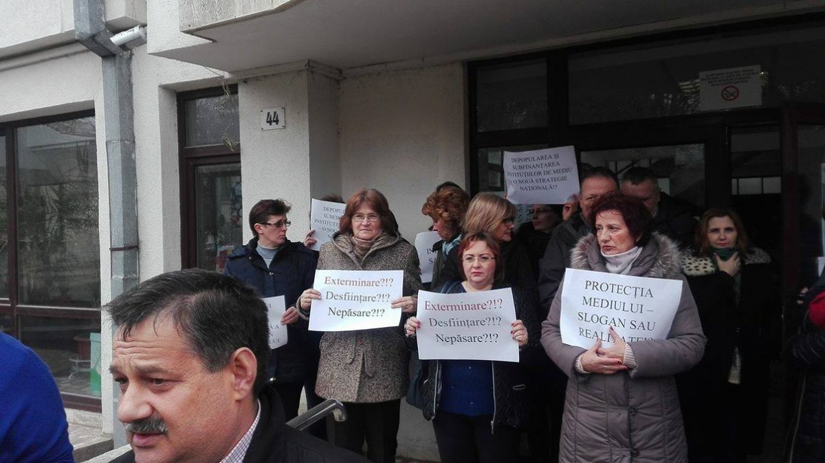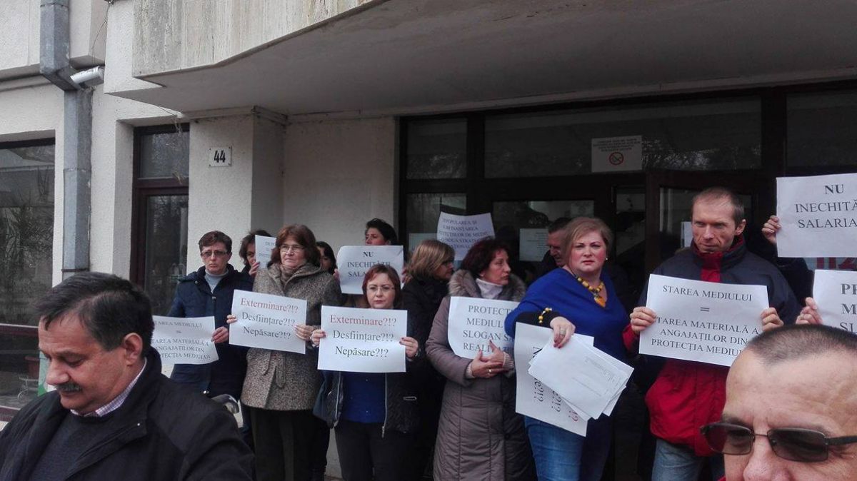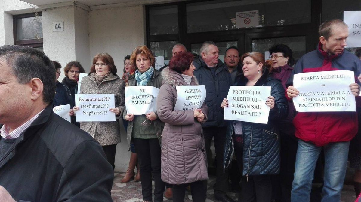 Marți dimineață angajații celor două instituții au blocat accesul în Agenția de Mediu și s-au alineat pe treptele unității cu tot felul de mesaje în mâini. Ei amenință cu blocarea unor avize pentru implementarea unor proiecte europene în cazul în care cerințele nu le sunt concretizate.