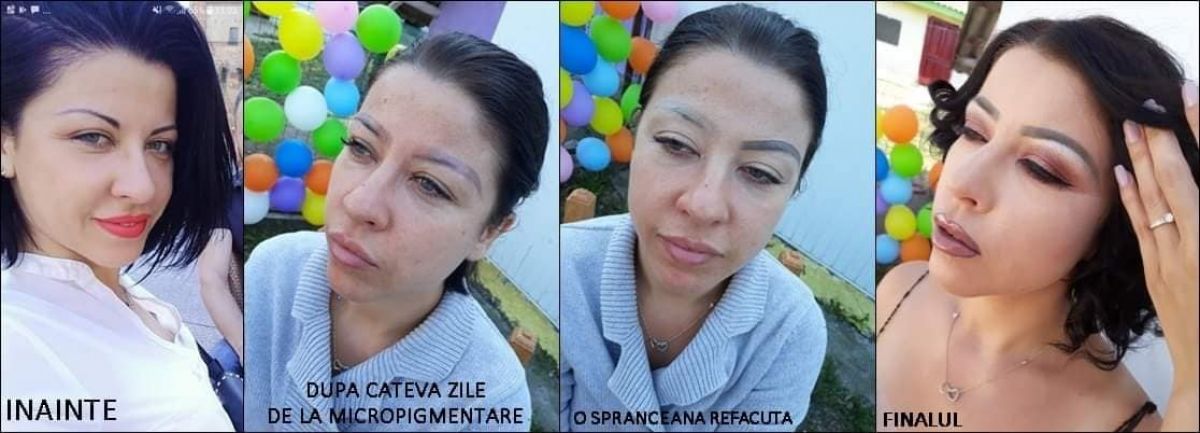 ”Această micropigmentare a avut loc (recent) în Botoșani, la cea pe care multe din voi o recomandați pentru acest serviciu dar și altele! La scurt timp, pigmentul a devenit mov. Nu aceasta ar fi marea problemă, ci forma care e total greșită. Sunt groase, strâmbe, neegale, prea lungi, prea… nu am cuvinte”, a scris tânăra pe Facebook.