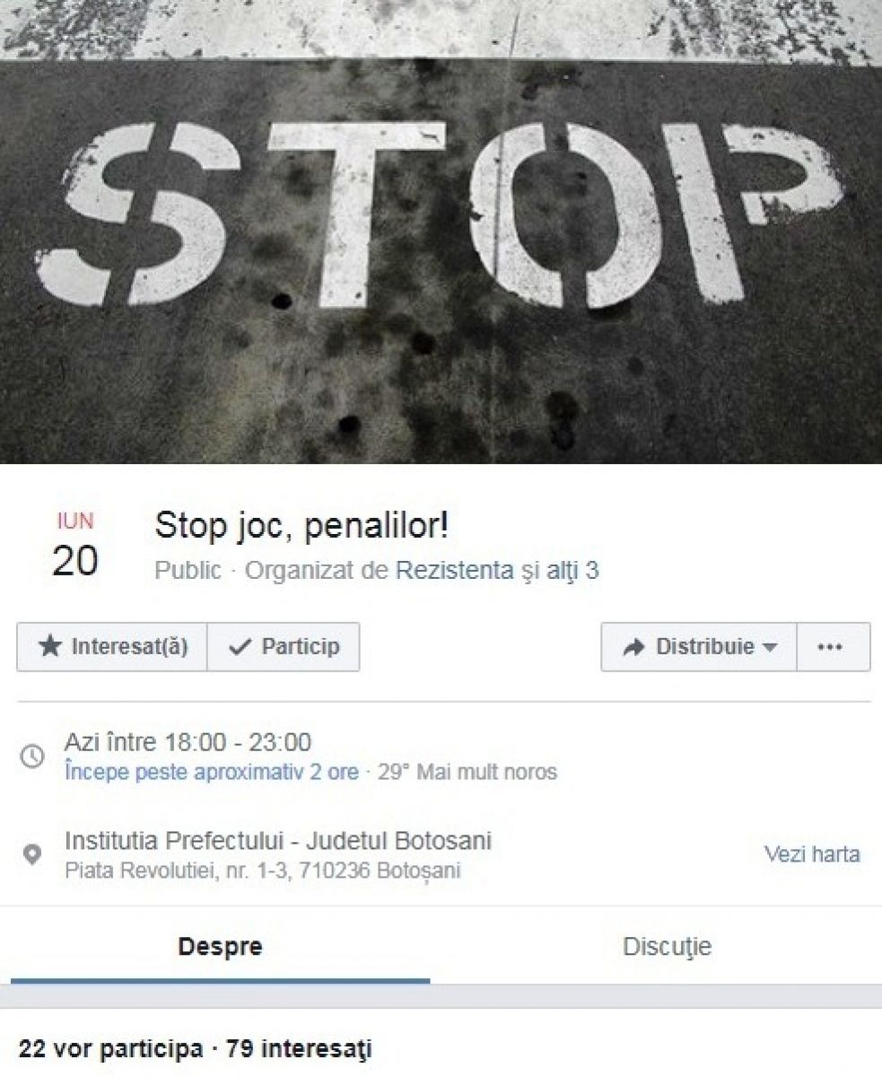 Pe la amiază, la evenimentul intitulat „Stop joc, penalilor!” îşi anunţaseră prezenţa 22 de persoane.