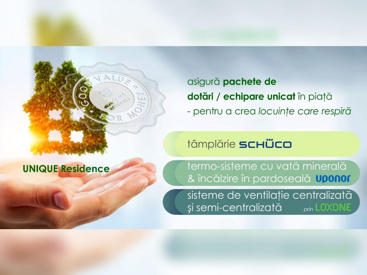 IZOLAȚIE - confort fonic și termic de nivel superior: pereți exteriori din cărămidă, termo-sisteme cu vată bazaltică, încălzire în pardoseală UPONOR, geamuri Tripan, tâmplărie din aluminiu SCHUCO (Germania);