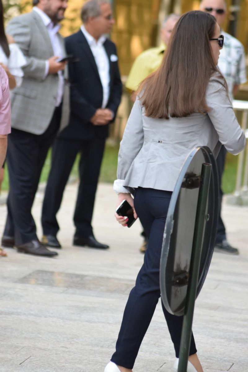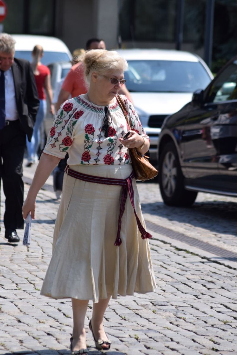 Puținele femei care au ajuns la manifestație au adoptat ținute lejere, de vară, ce au constat în rochițe sau fuste cu bluzițe elegante, sandale sau pantofi ușor, cu tocuri nu foarte înalte.
