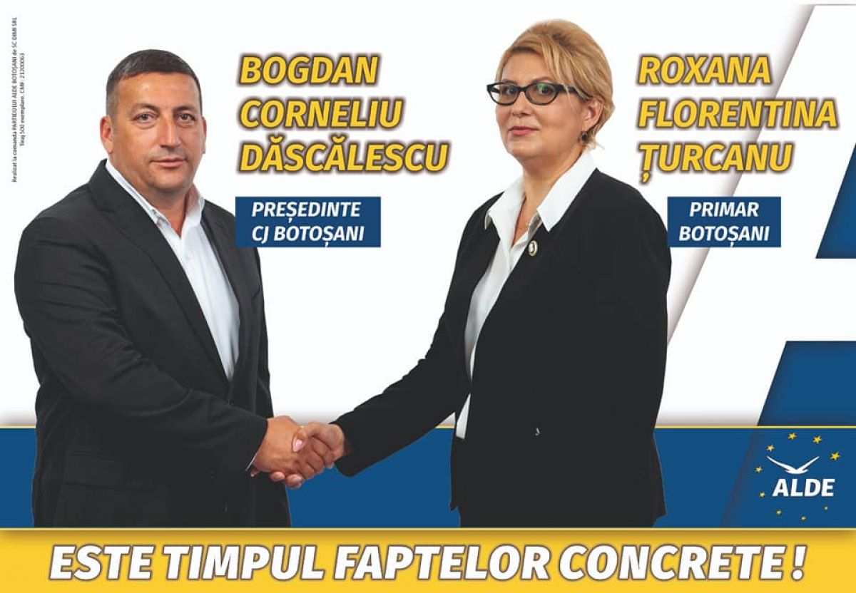 Contăm pe sprijinul dumneavoastră și ne dorim să votați formațiunea politică ALDE atât la Primăria municipiului Botoșani, Consiliul Județean Botoșani, cât și la Consiliul Local. Experiența și energia noastră vor fi canalizate spre realizarea faptelor concrete. Este timpul lor, este timpul echipei ALDE!”,