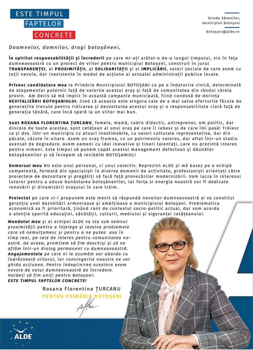 Roxana Țurcanu a transmis o scrisoare deschisă către botoșăneni.