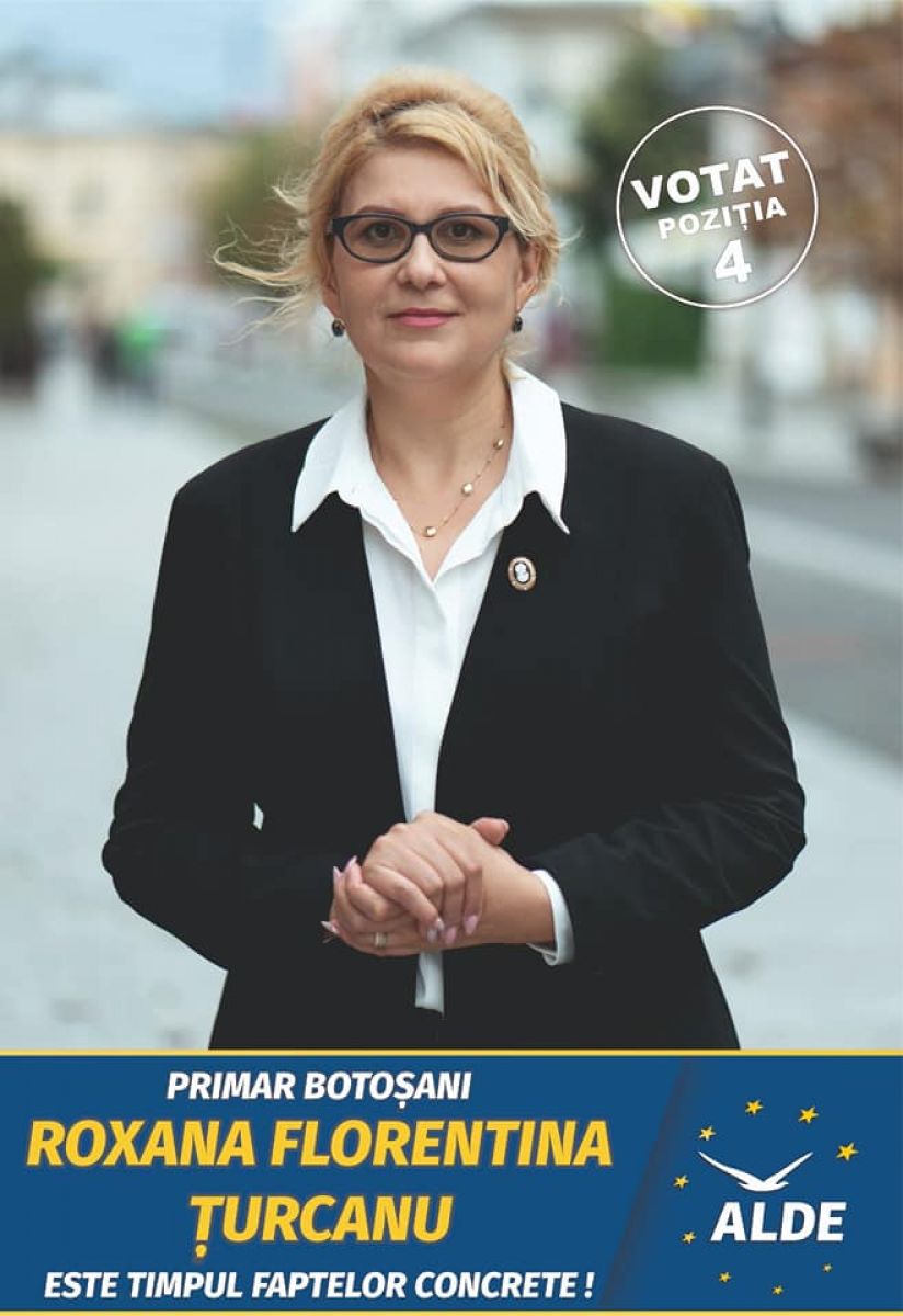Roxana Florentina Țurcanu, reprezentanta ALDE la Primăria municipiului Botoșani vine să prezinte botoșănenilor programul de management municipal pe care l-a construit împreună cu echipa sa și a cărui implementare va începe imediat după obținerea mandatului local.