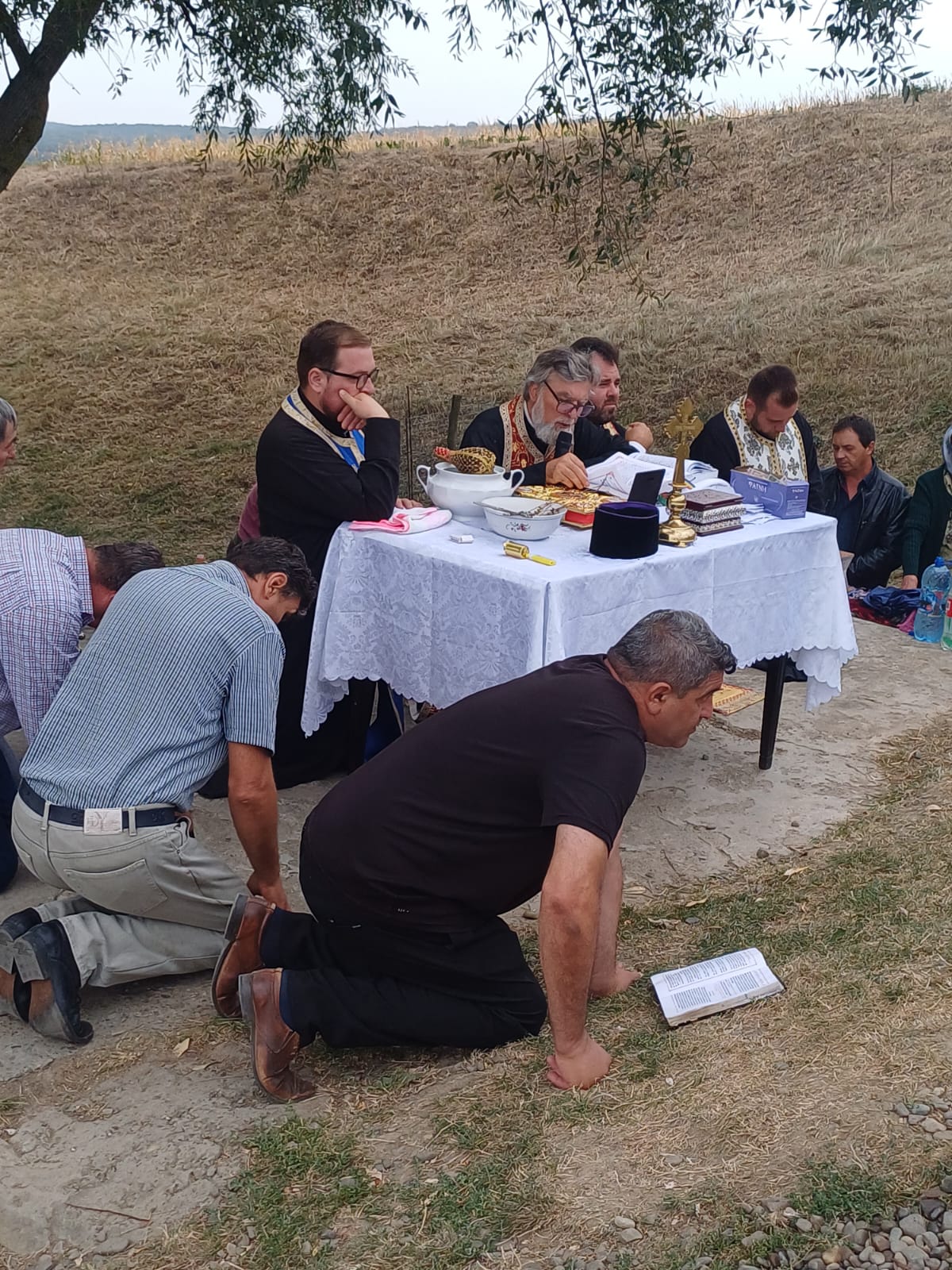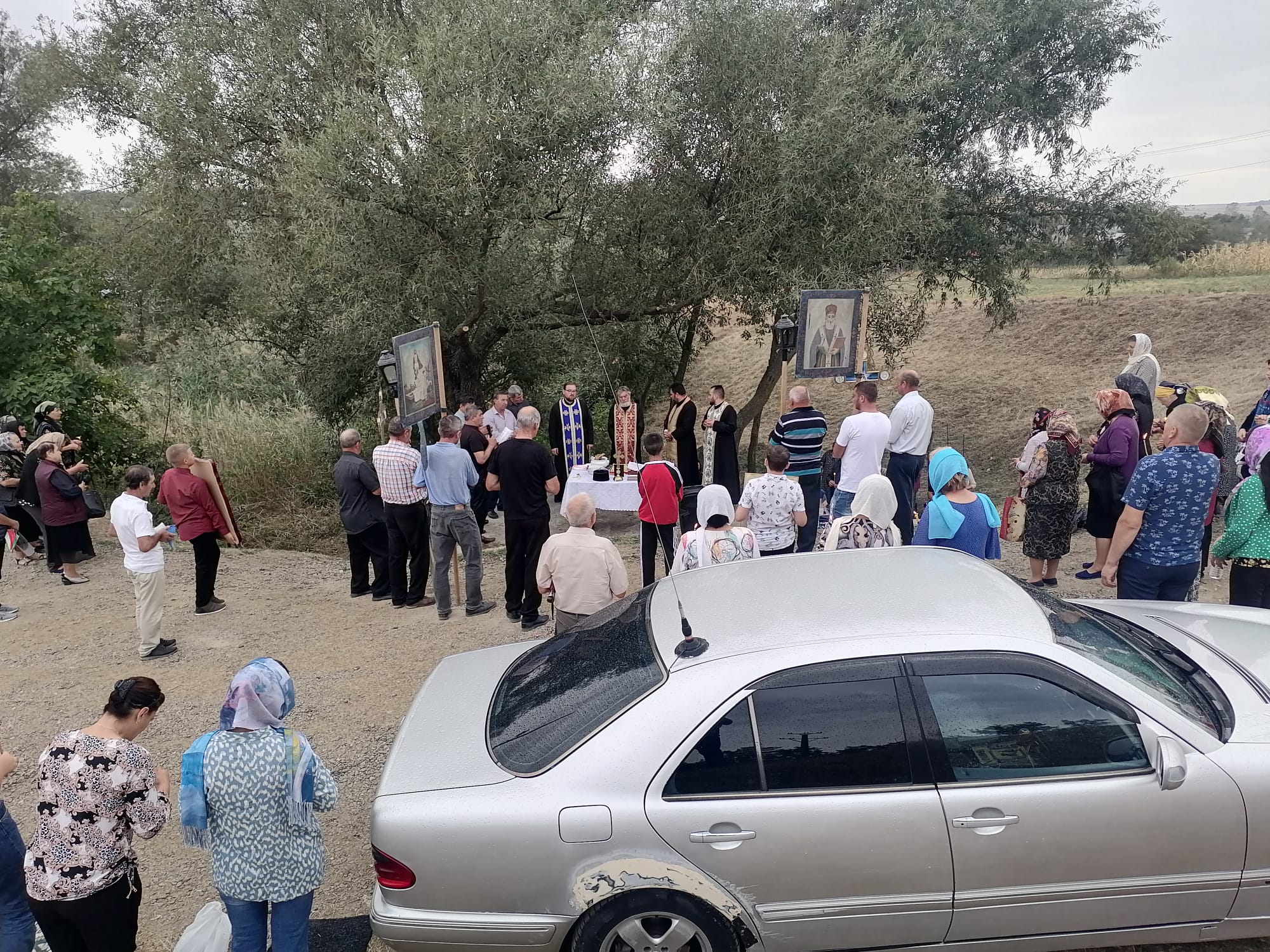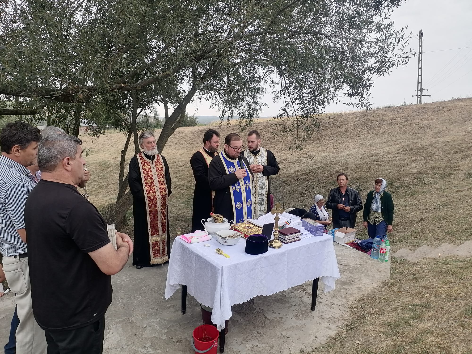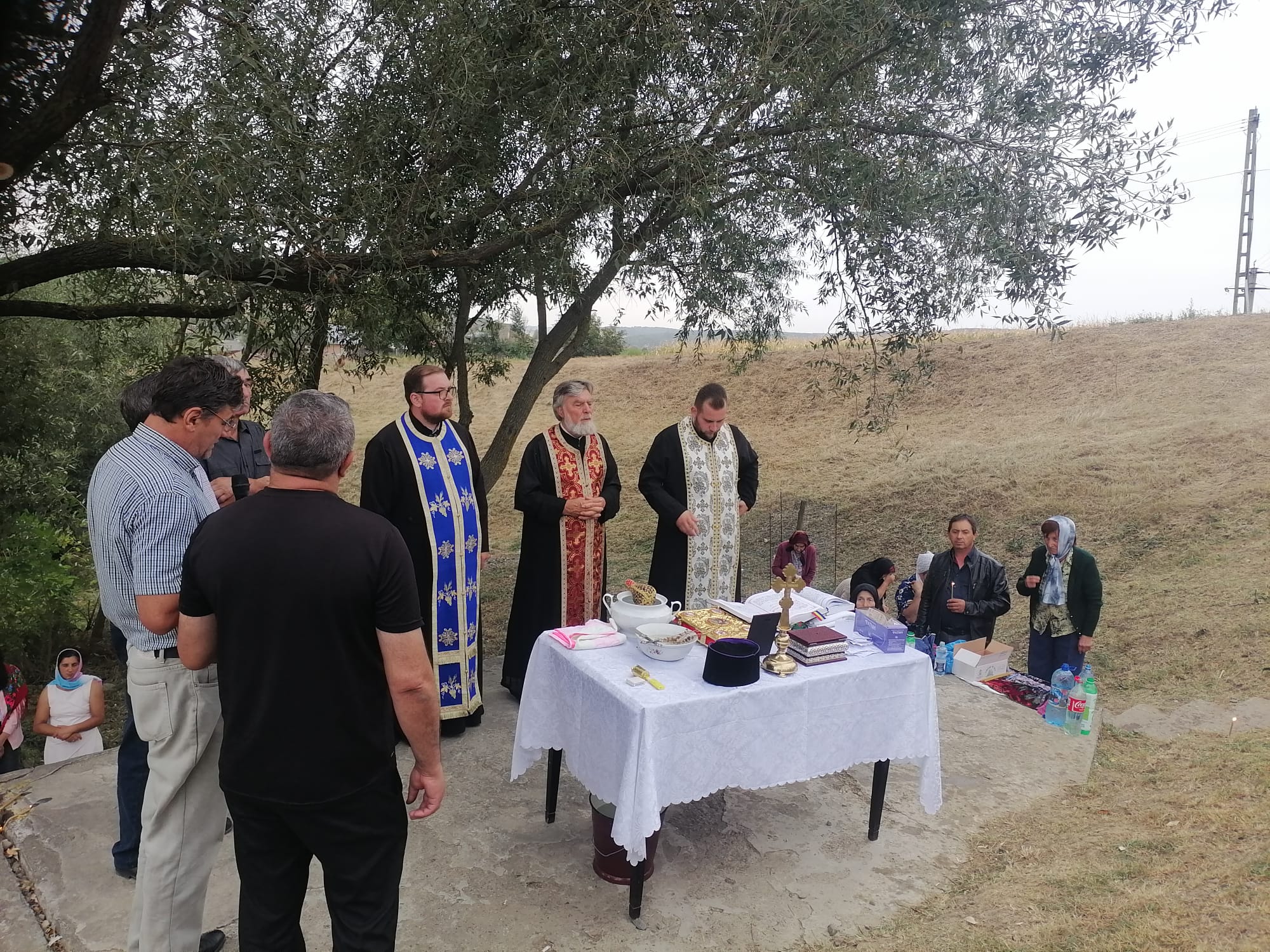 A fost săvârșită sfințirea apei, au fost citite rugăciuni de dezlegare și s-a săvârșit Rânduiala slujbei la vreme de secetă.