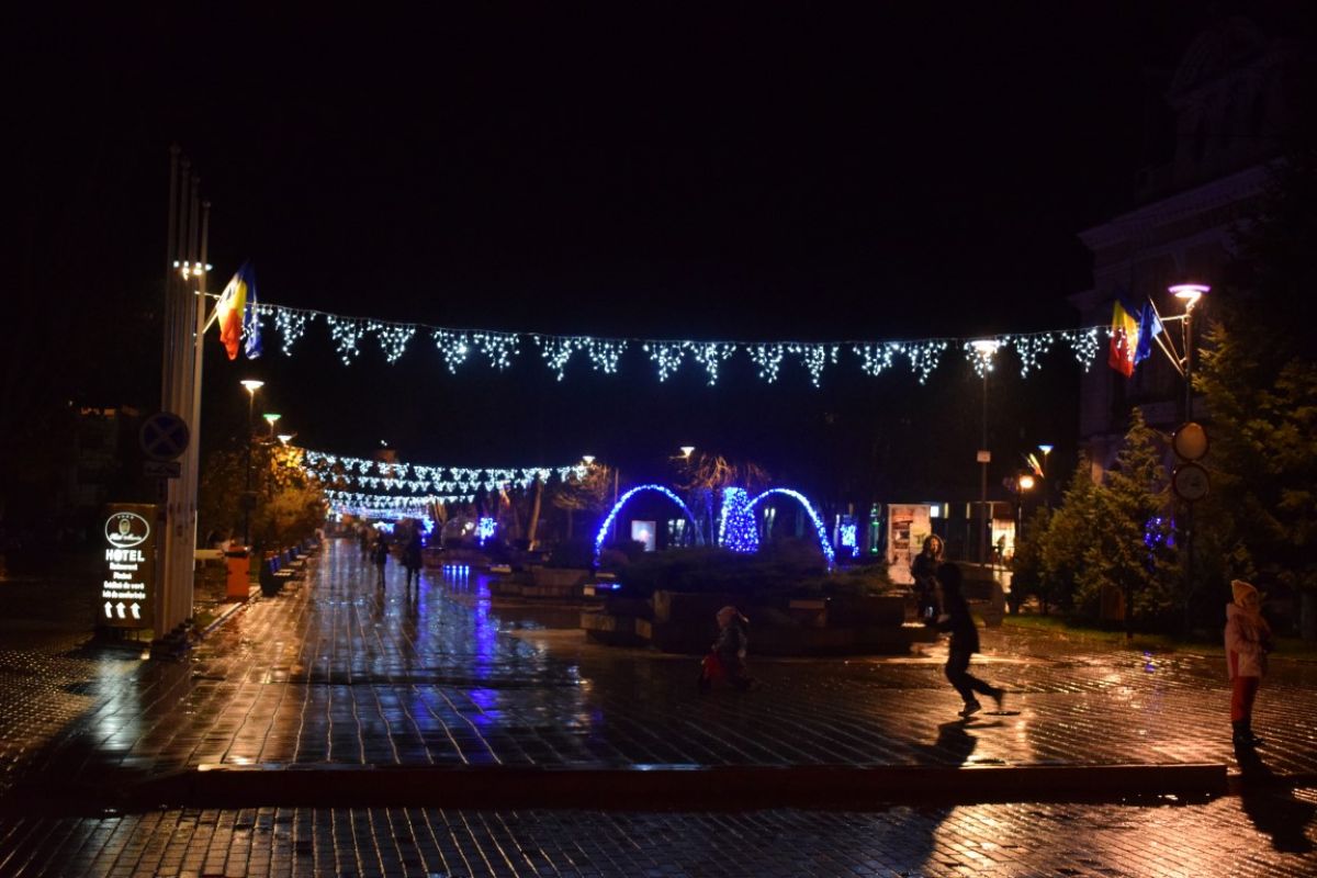 În zona Palatului Administrativ și sediului Primăriei predominau mai ales cele trei culori simbol, albastru – galben – roșu, în așteptarea Zilei Naționale a României. Pietonalul Unirii era de asemenea, iluminat.