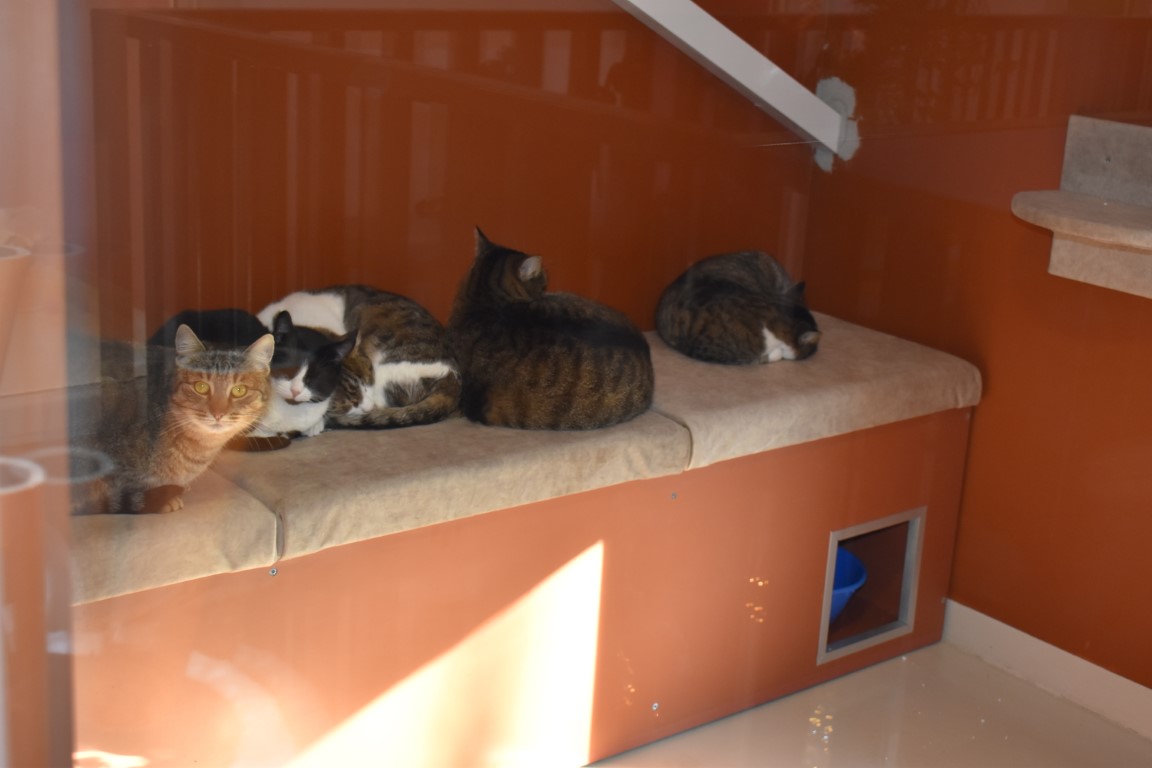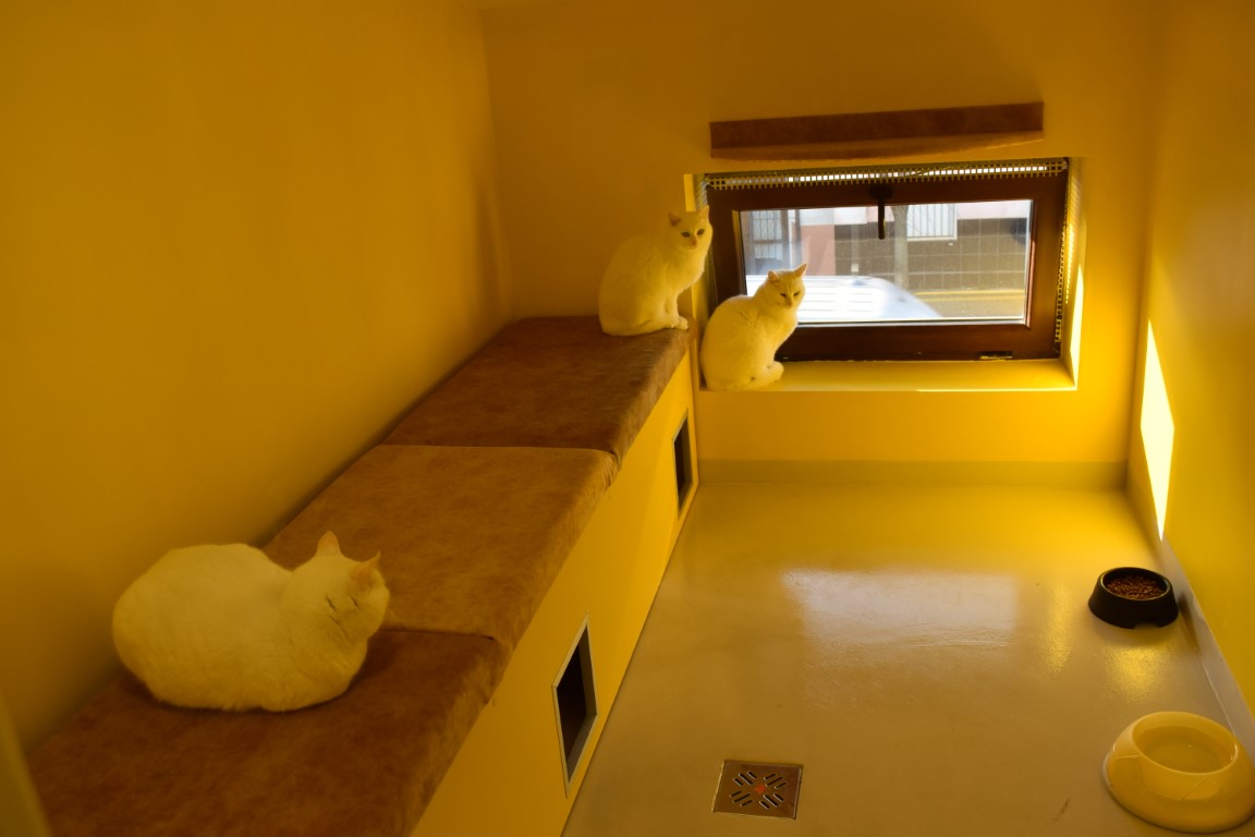 Elementul principal de atracție este însă de departe zona unde a fost amenajată cafeneaua și unde sunt pisicile care trăiesc de ani în șir în adăpostul celor de la Triovet. Majoritatea sunt salvate de pe domeniul public.