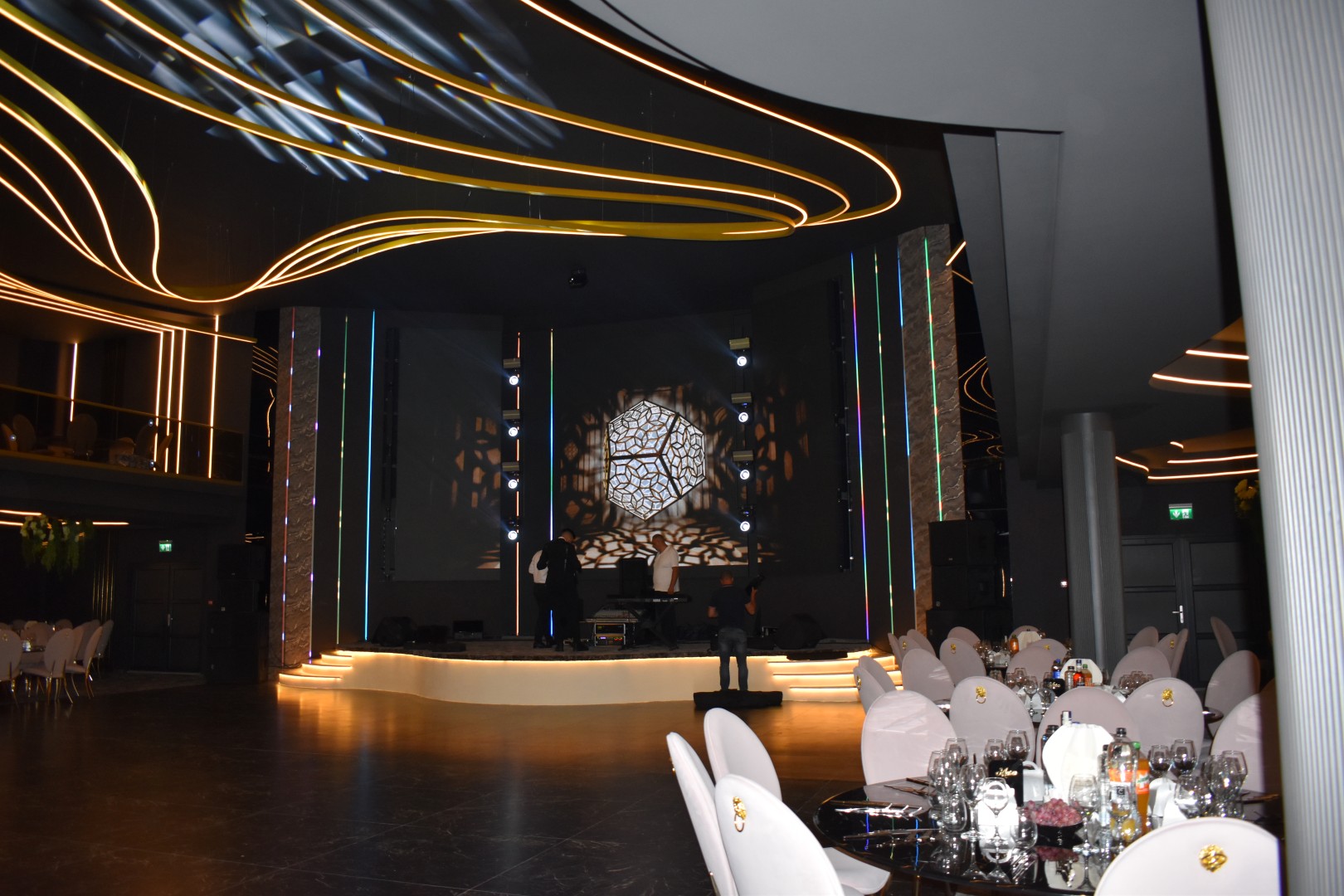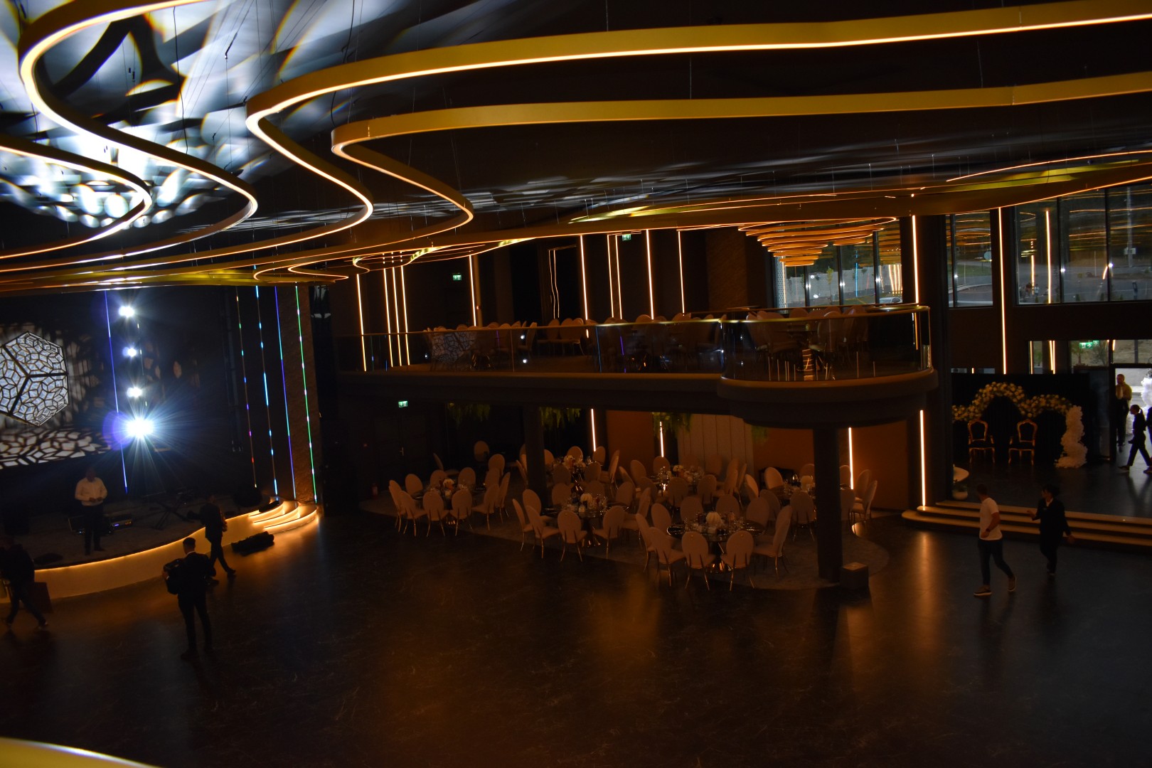 Balustradele circulare din sticlă și jocurile din lumini încastrate în pereți sunt elementele care produs un efect special. Și trebuie spus că dotările de la Solis Forum sunt de ultimă generație, iar astfel practic se marchează trecerea într-o nouă eră a organizării de evenimente. Lumini inteligente, proiecții spectaculoase, efecte speciale și un sistem de sunet premium transformă fiecare eveniment în unul de neuitat.