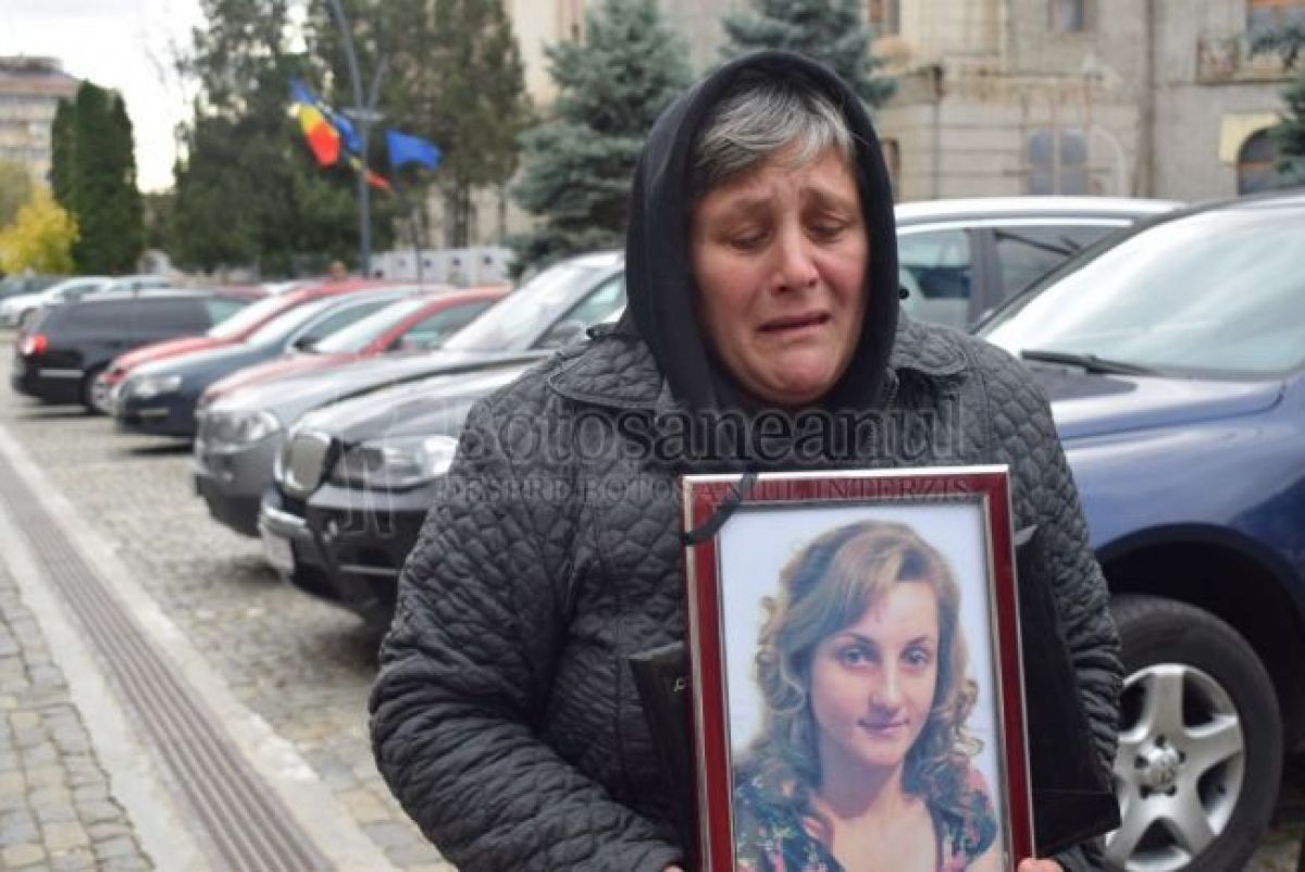 Cu tabloul fetei în brațe și cu o lumânare aprinsă, părinții fetei au spus că intră în grevă după sentința magistraților botoșăneni care-i condamna pe cei vinovați de moartea fetei lor la 6 ani și 10 luni, pentru fiecare dintre cei doi autori, din care 5 ani pentru omor calificat.