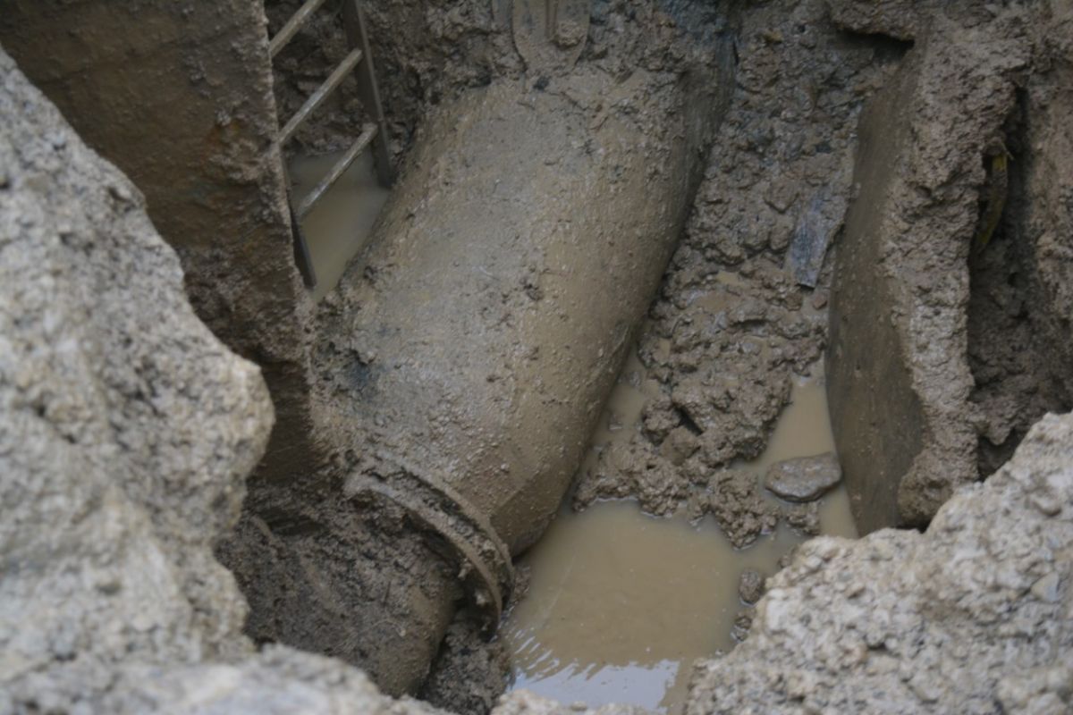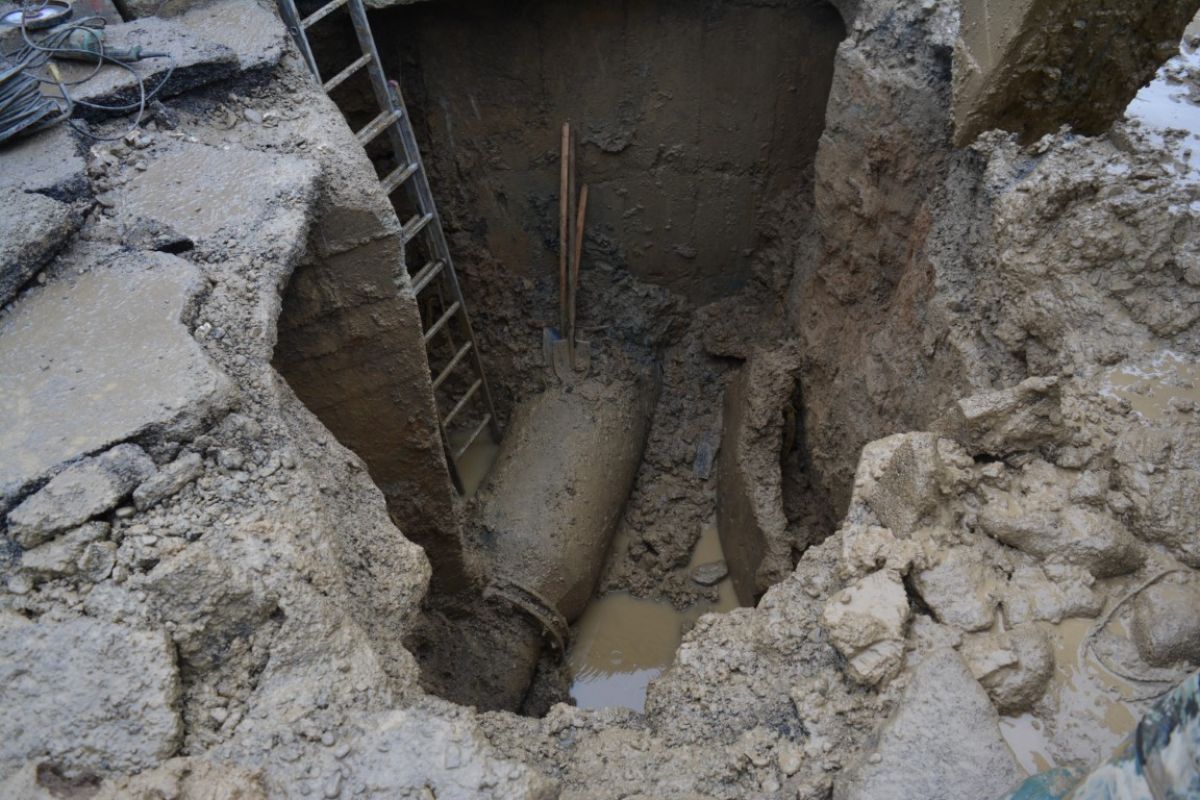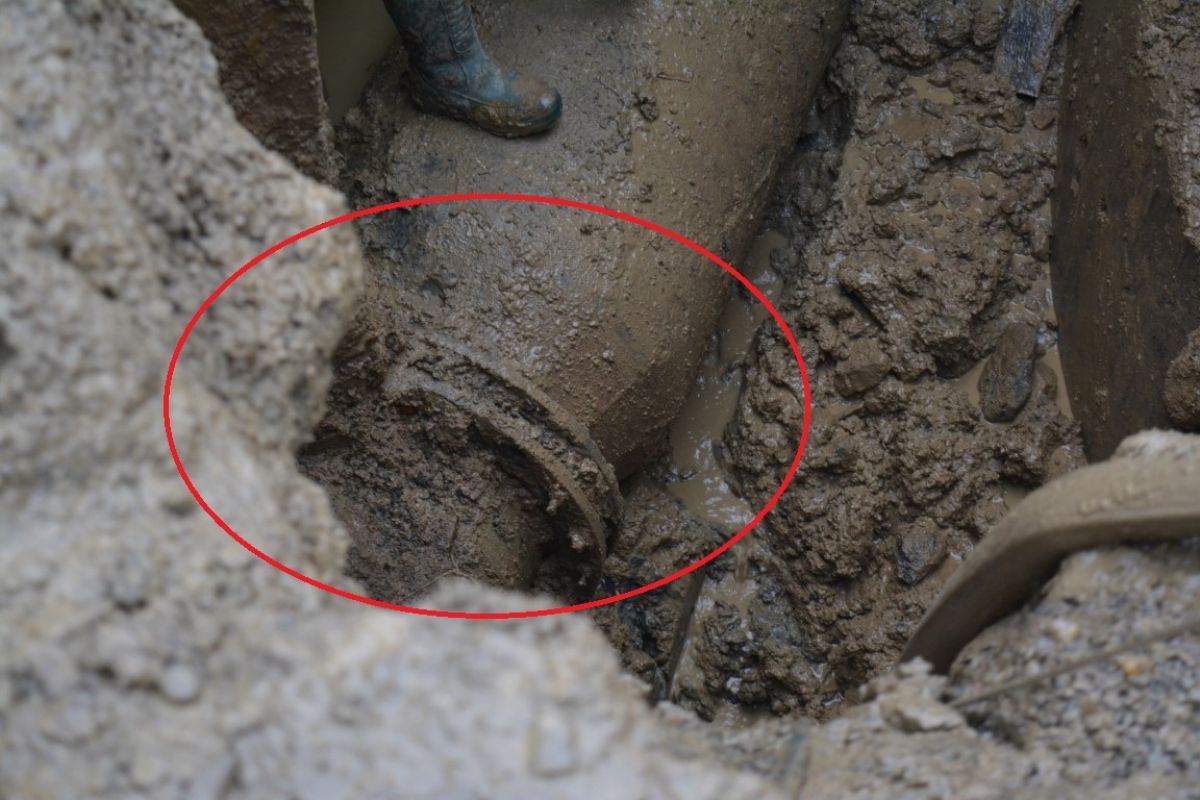 După ce au săpat până la conducta de oțel care are diametrul de 800 mm, echipele societății de apă au depistat și problema. O fisură impresionantă care se întinde pe jumătate din diametrul conductei.