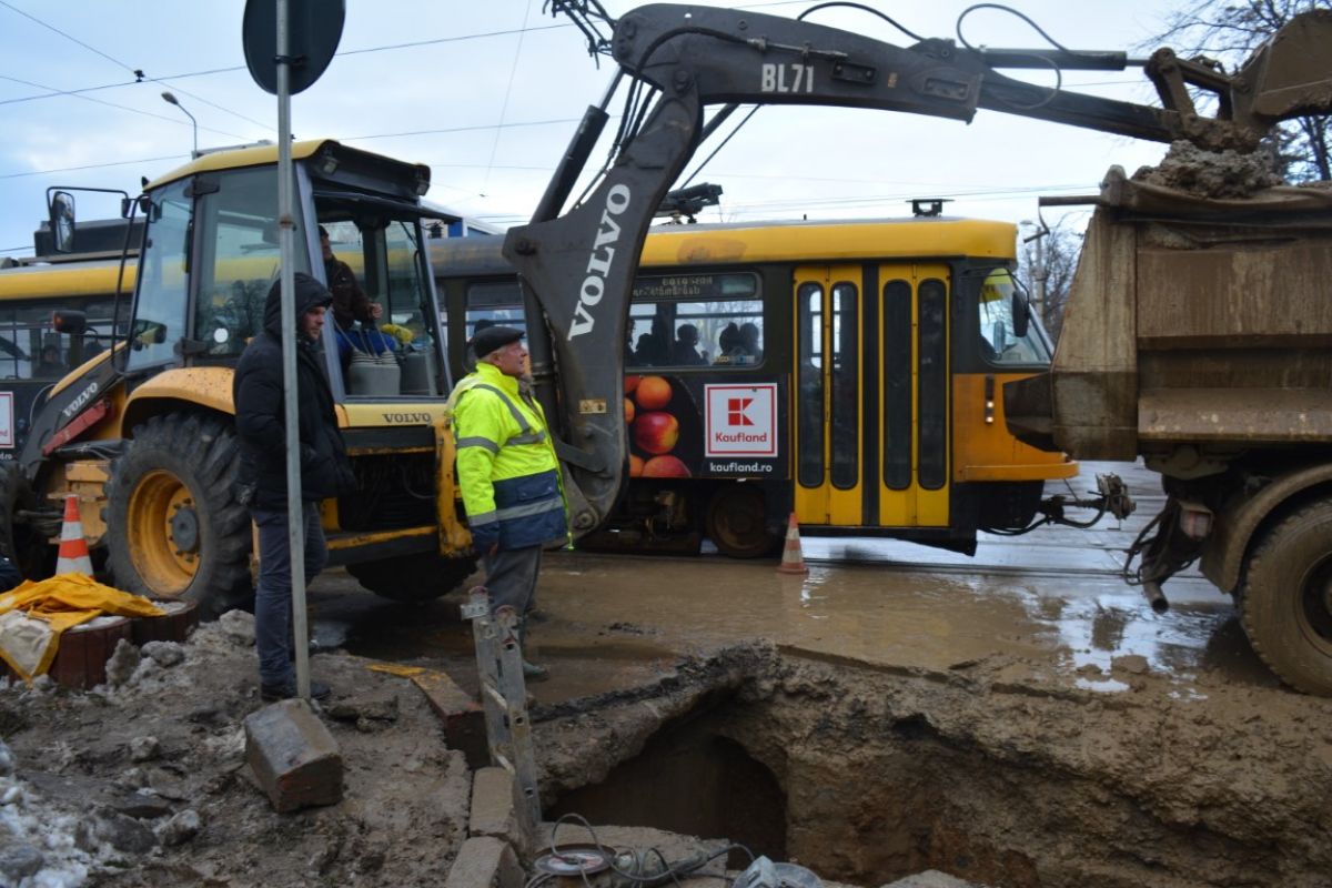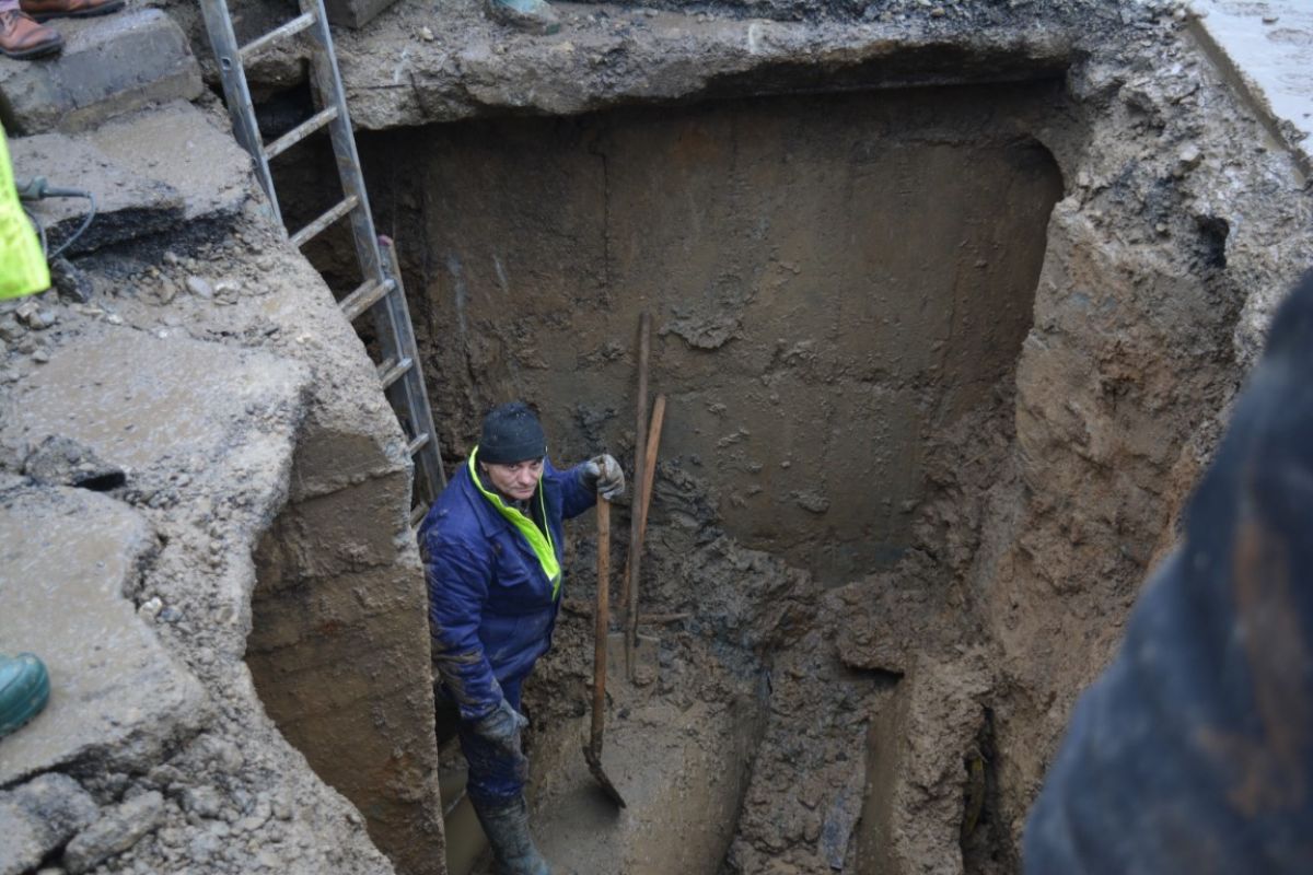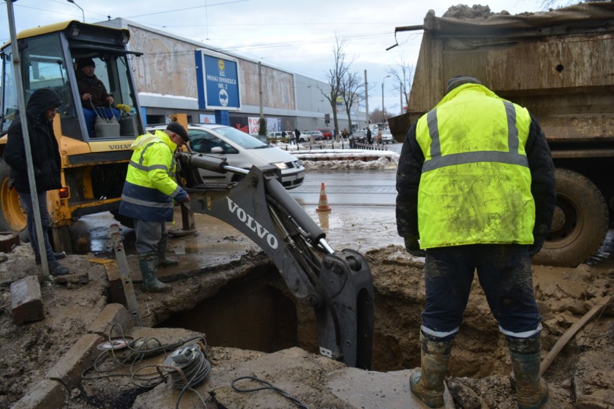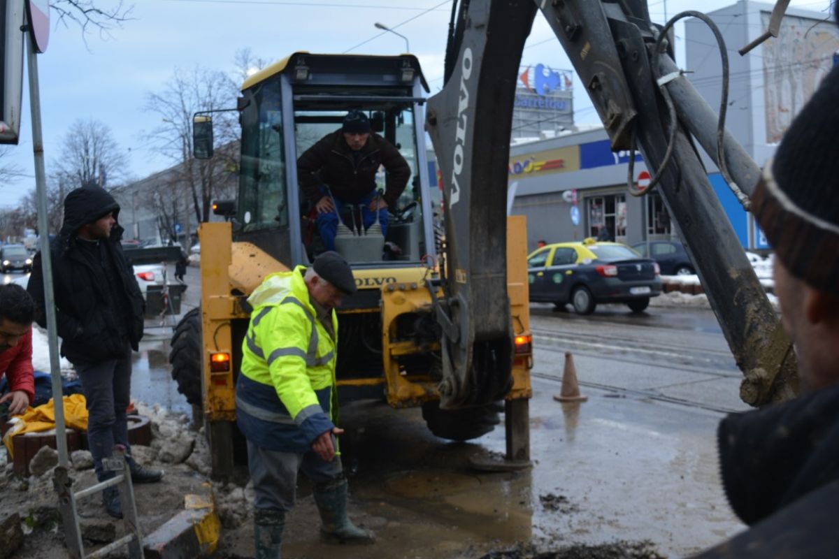 Pe un frig care pătrunde în oase și plini de noroi, muncitorii de la societatea Nova Apaserv au mai făcut un pas important în intervenția de lângă Carrefour.