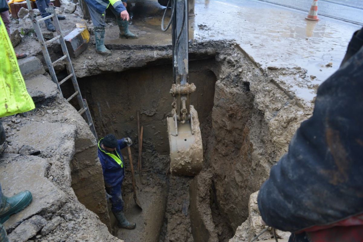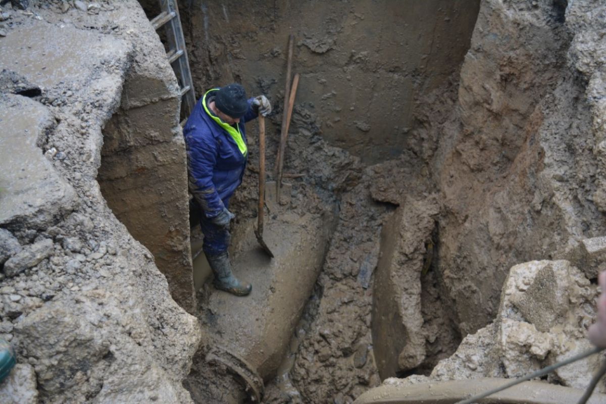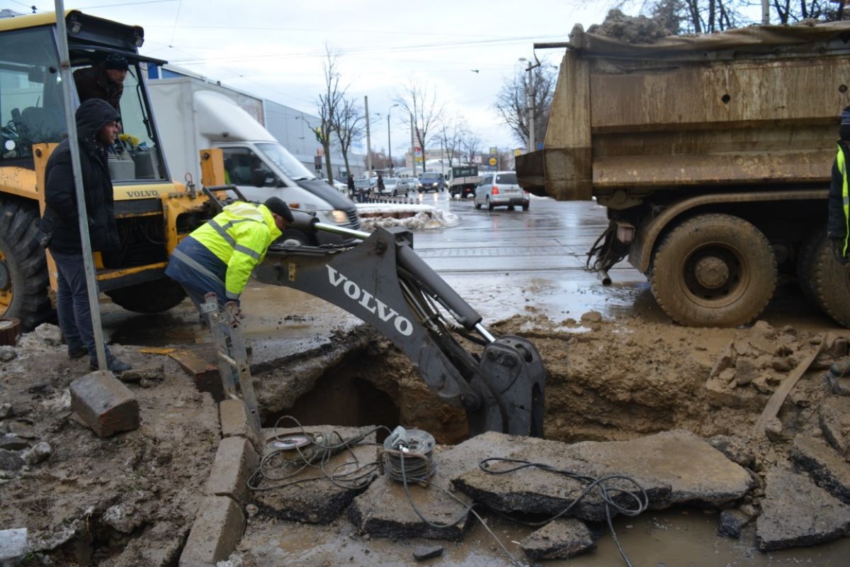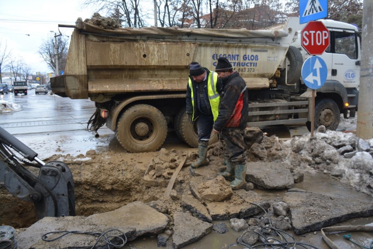 Pe un frig care pătrunde în oase și plini de noroi, muncitorii de la societatea Nova Apaserv au mai făcut un pas important în intervenția de lângă Carrefour.