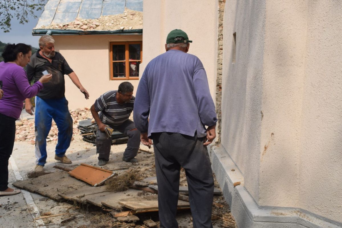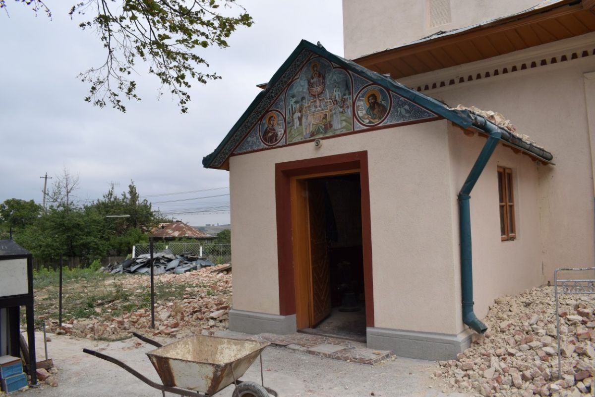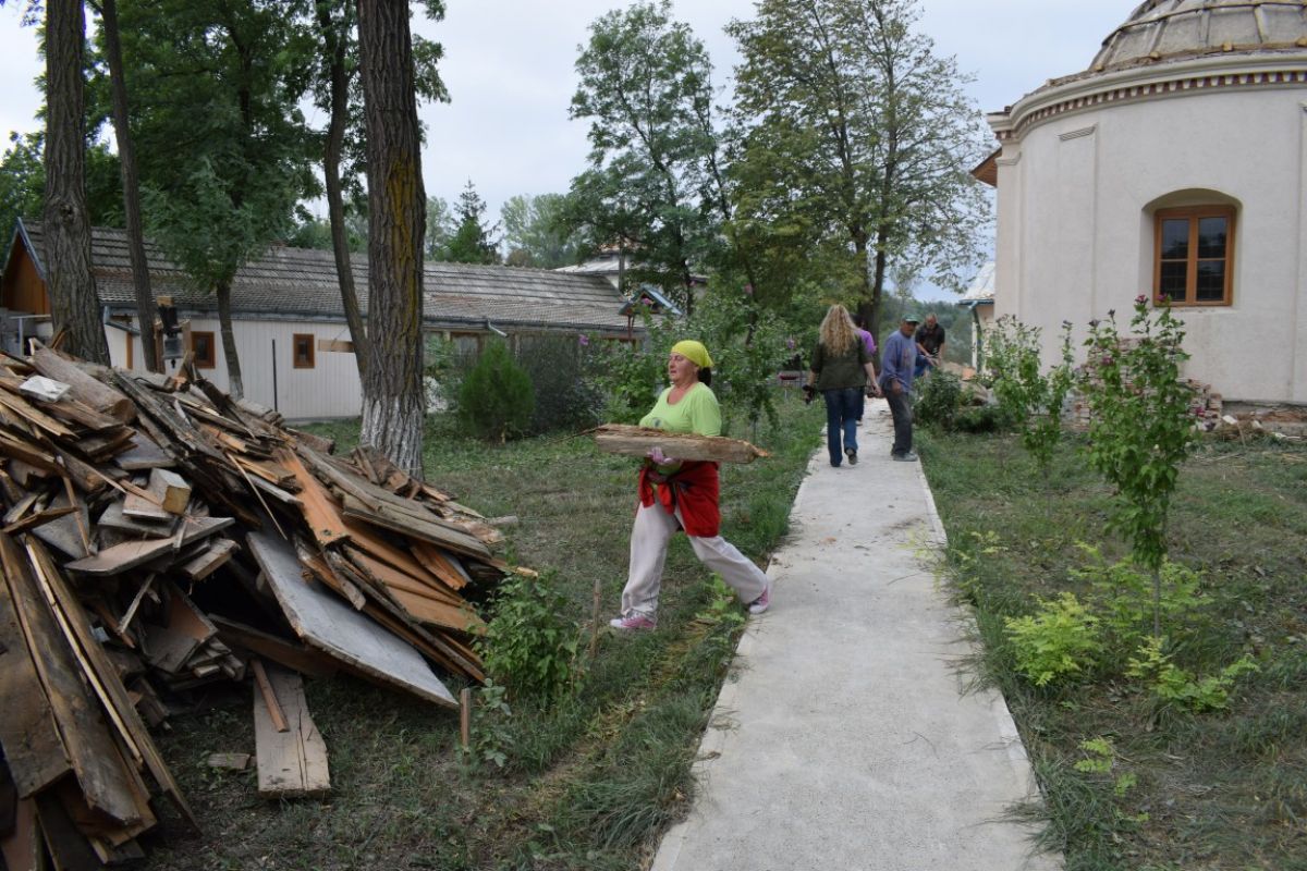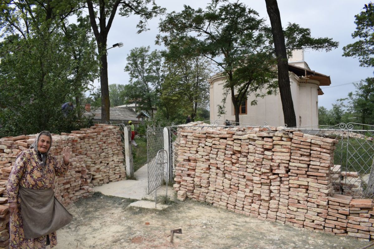 Așa că, s-au apucat să o dărâme. Puțini dintre enoriași. Explică epitropul: ”Cu oamenii din sat, oamenii noștri. Vecina mea, bunica părintelui, soția mea. Nu ne e rușine, să știți. Eu voluntar, nevasta voluntară, părinții preotului sunt permanent, noi cum primim liber de la serviciu”.
