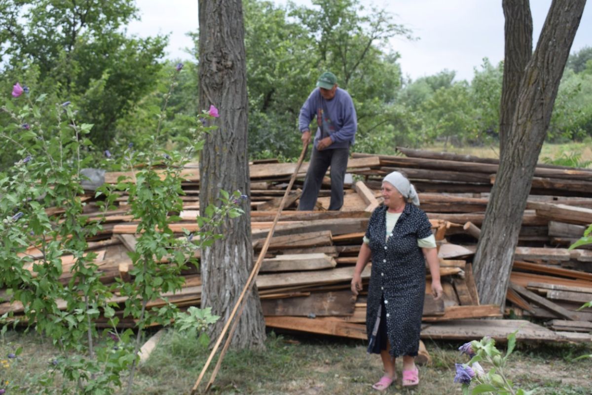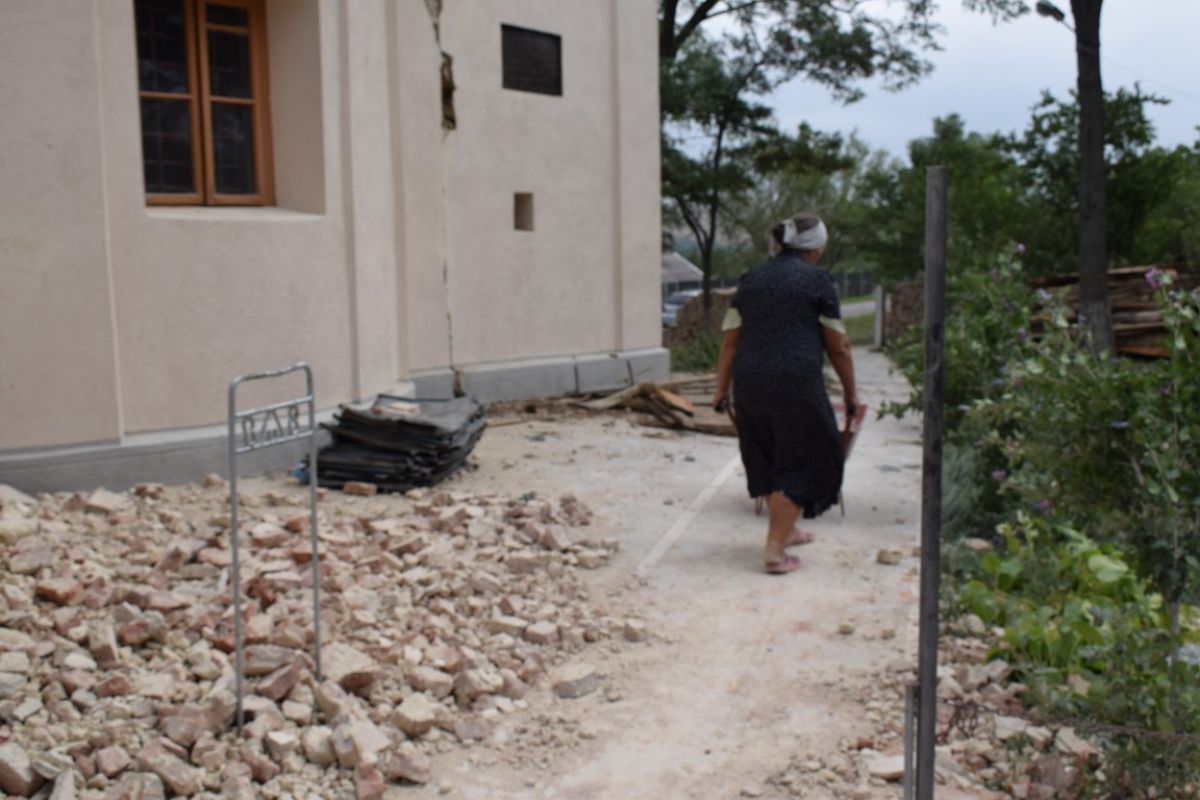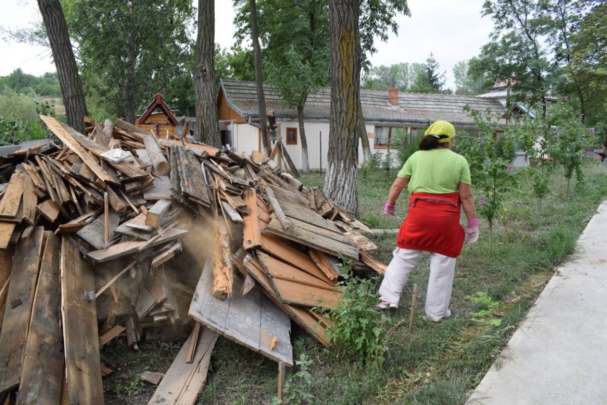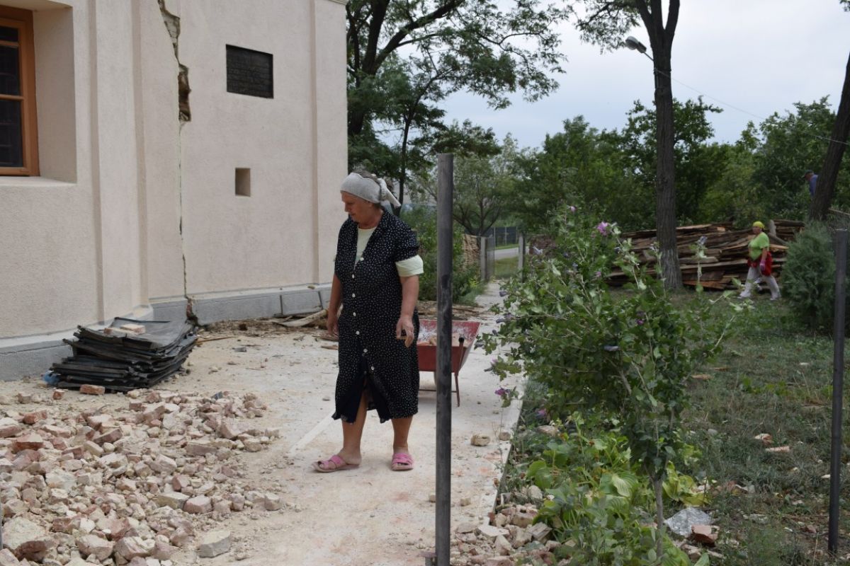 Așa că, s-au apucat să o dărâme. Puțini dintre enoriași. Explică epitropul: ”Cu oamenii din sat, oamenii noștri. Vecina mea, bunica părintelui, soția mea. Nu ne e rușine, să știți. Eu voluntar, nevasta voluntară, părinții preotului sunt permanent, noi cum primim liber de la serviciu”.