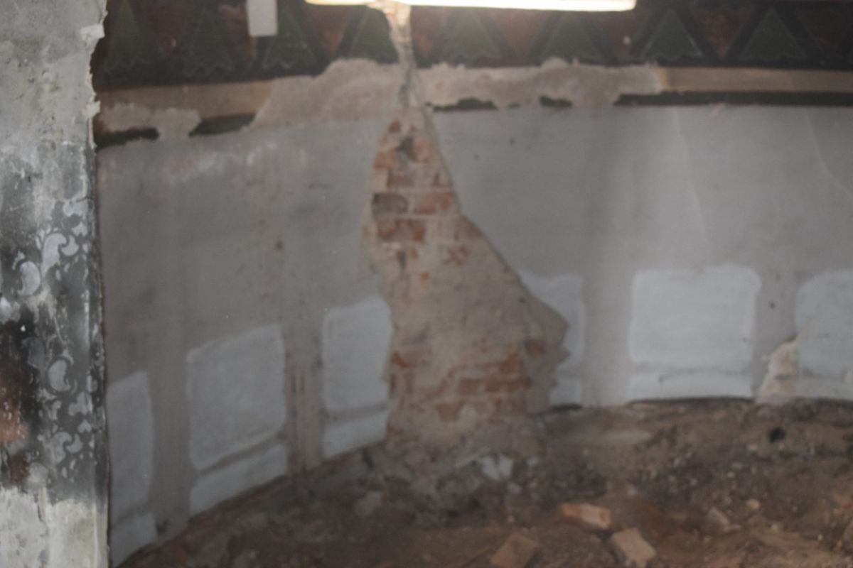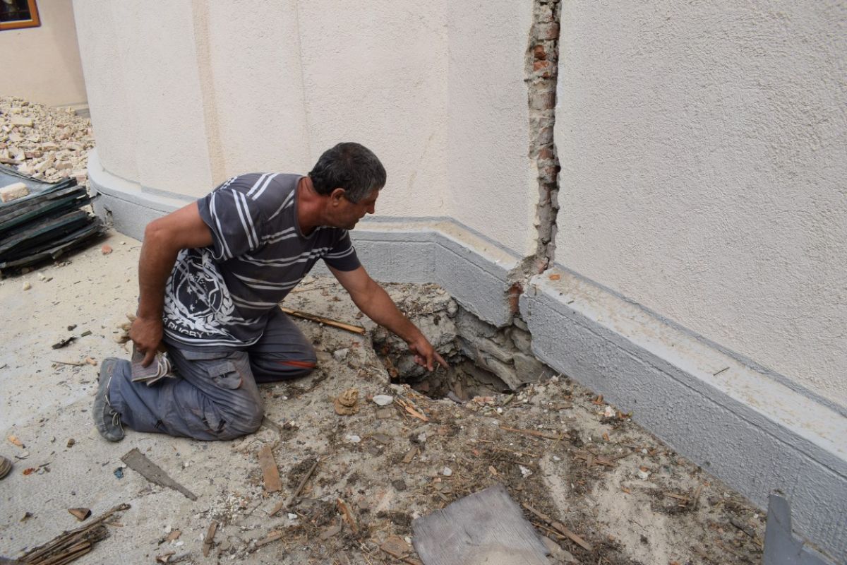 Îngrijorarea a apărut în timpul slujbelor când bucăți din tencuială tot cădeau și speriau lumea. Și s-a ajuns până la situația în care Biserica s-a rupt la propriu în două.