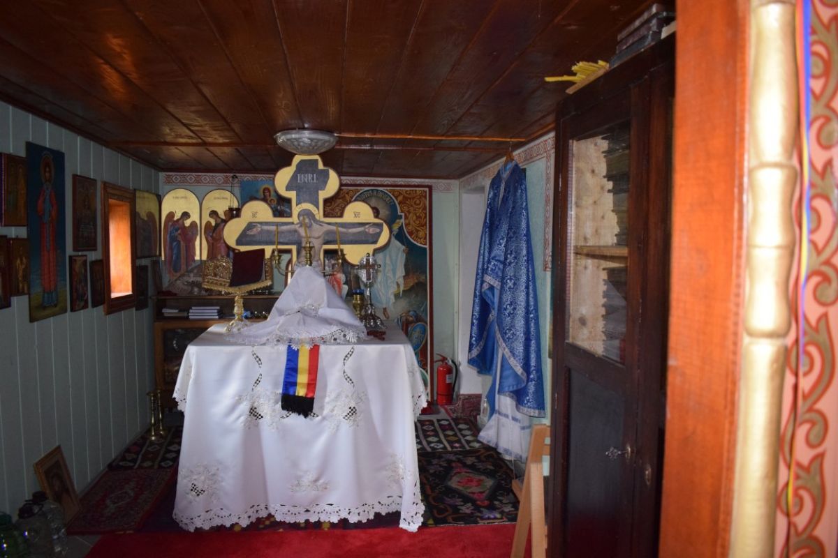 ”Biserica este de prin 1820 cam așa ceva. Fundația la Biserică, cum făceau atunci străbunicii noștri, a fost pe lespede de piatră, nu s-a mai făcut legătura. Din cauza drumului pe care circulă mașini mari, că a fost părintele Chiroșcă înainte, a făcut multe sesizări, nu a înțeles nimeni. A intrat în trepidații. Pământul este moale, fiind fundația moale, a început să crape, s-a deplasat altarul și catepeteasma față de biserica obișnuită, s-a rupt, a crăpat”