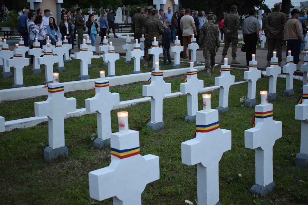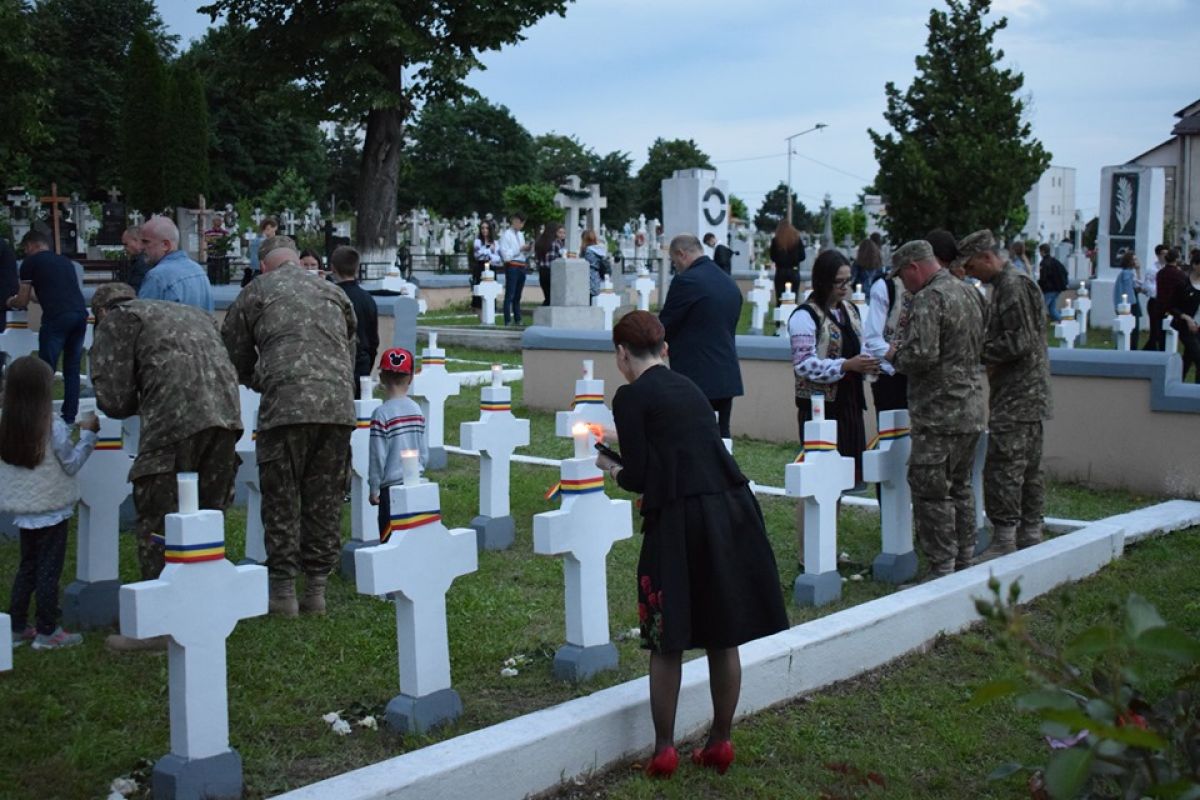 S-a sunat „Stingerea” în Cimitirul Eroilor, în seara de Înălţare, în interpretarea trompetistului Robert Mironică de la Filarmonica Botoşani.