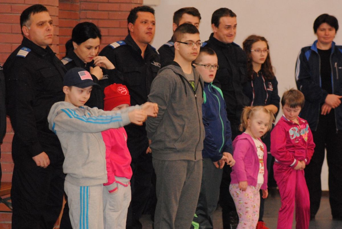 Astăzi, la Colegiul NaționaL A.T. Laurian au fost prezenți zece copii cu Sindrom Down din Botoșani și Suceava. ”Ne-am limitat la numărul acesta fiind cumva forțați de numărul de adulți pe care îi putem chema, fiind o zi de duminică. Sunt în sală 20 de persoane adulte, 10 pompieri și 10 jandarmi”, a mai spus președintele Asociației.