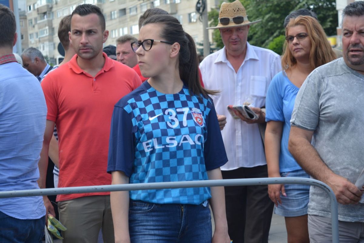Şi totodată a readus pe arenă şi microbistele. Unele dintre ele s-au îmbrăţişat la poarta principală, altele au venit cu eşarfe ce aveau însemnele clubului, existând şi fete care au folosit prilejul pentru a-şi etala tatuajele.