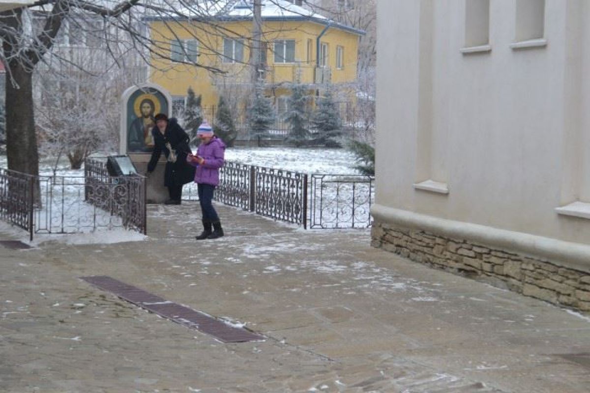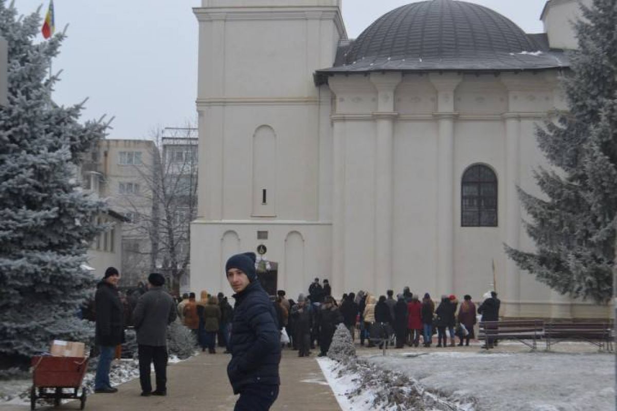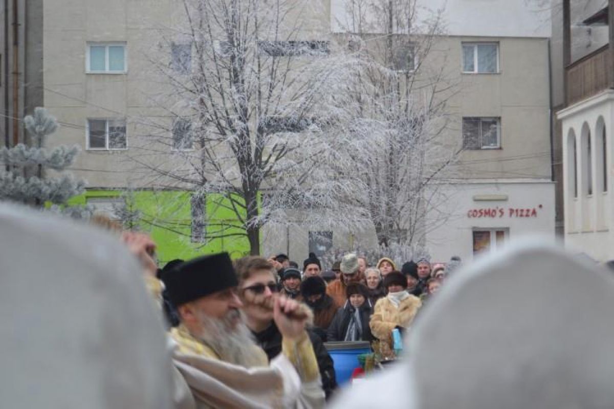 Înarmaţi cu mănuşi, căciuli şi fulare groase, unii au ascultat slujba de afară, întruntând frigul, alţii au stat înăuntru.