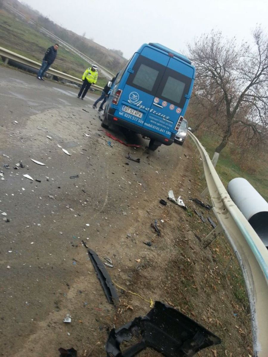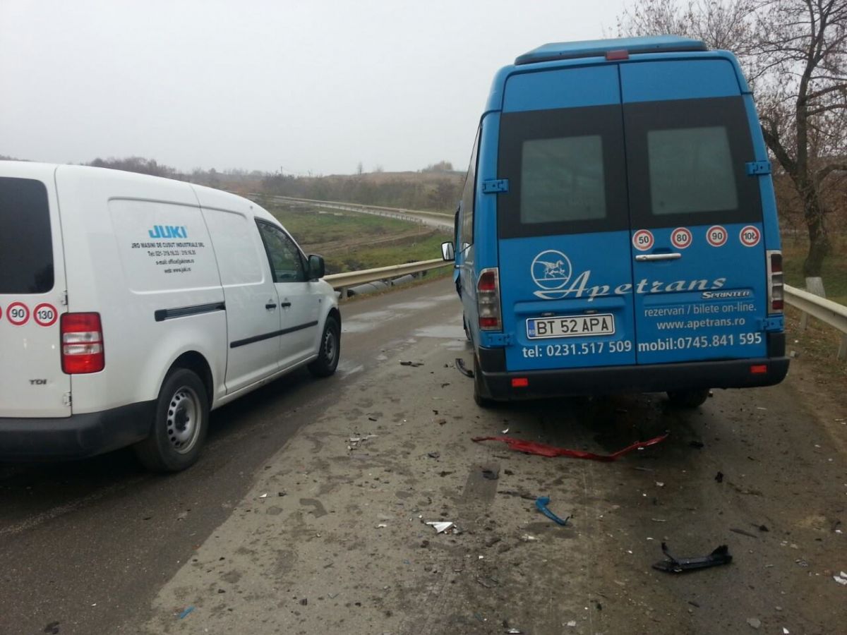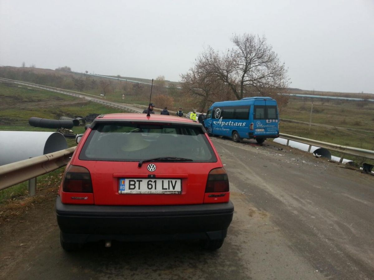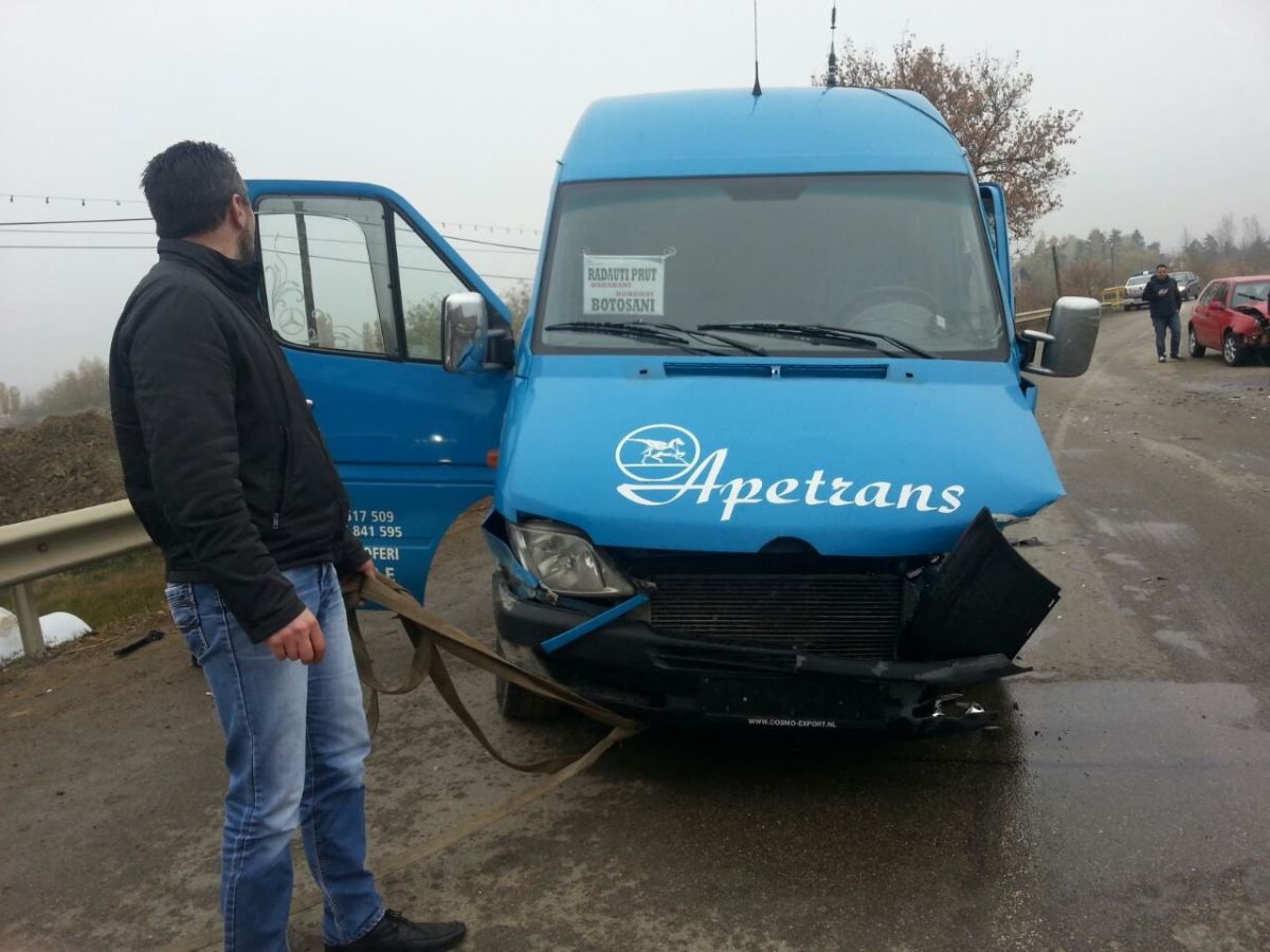 Acesta cobora dealul de la ieșirea din Cervicești și în apropierea liniei ferate a intrat pe contrasens. A lovit frontal un microbuz de la Apetrans care efectua o cursă pe ruta Rădăuți Prut-Botoșani. Impactul a fost puternic, automobilul răsucindu-se și ajungând cu fața invers față de zona de deplasare. Microbuzul avea opt pasageri și, potrivit polițiștilor de la Serviciul de Circulație, din fericire nu au suferit răni grave. Totuși, mașinile sunt serios avariate, mai ales VW-ul pe care acum o mașina cu platformă încearcă să îl ridice de pe carosabil. Șoseaua este plină de altfel cu bucăți din caroseria celor două mașini.