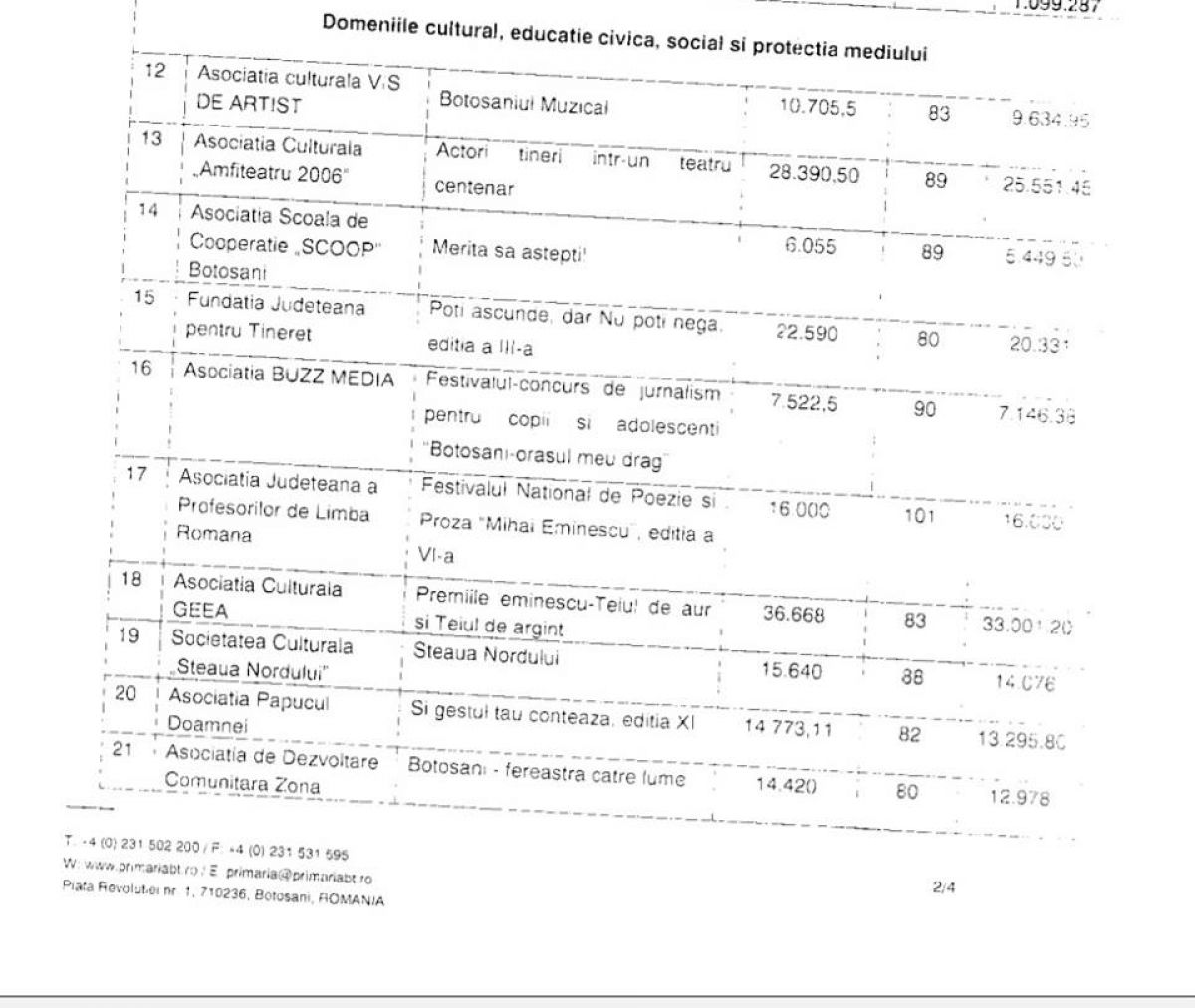 Comisia din cadrul Primăriei Botoșani desemnată prin Hotărâre de Consiliu Local a terminat sesiunea de evaluare a proiectelor pentru finanțări nerambursabile pe domenii de activitate precum sport sau cultură.