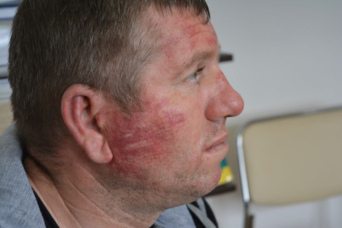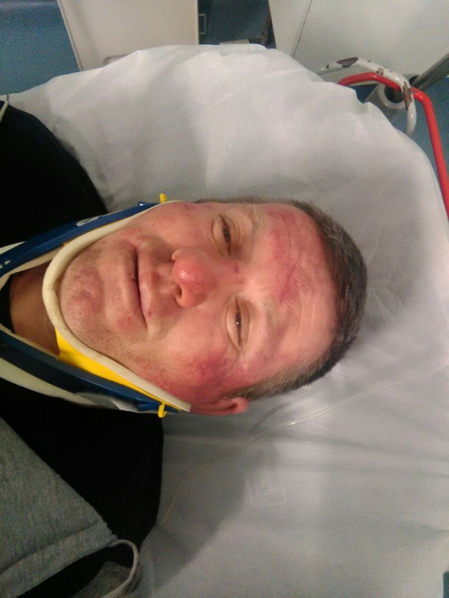 Explicațiile acestuia par o glumă în condițiile foii de examinare medicale. Dincolo de asta, marți fața lui Vasile Cencu vorbea singură: pe ambii obraji și pe frunte avea o mulțime de răni, iar nasul nu prea era la locul lui.