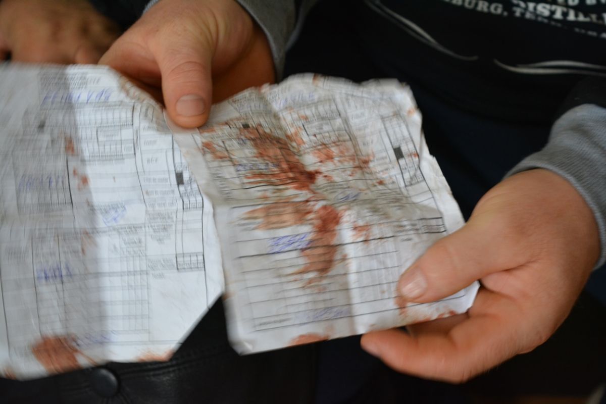 Sângele îi curgea pe toată fața și l-a oprit, ironia sorții, cu niște foi de parcurs. A vorbit cu fiul și cu soția și a chemat o ambulanță, moment în care, nervoși că a recurs la un asemenea gest, a fost scos din abator.”Când am ajuns acolo tata era pe jos, în fața abatorului. Nici măcar nu au deschis ușa să vadă ce se întâmplă. Nici când a venit ambulanța nu au deschis”,