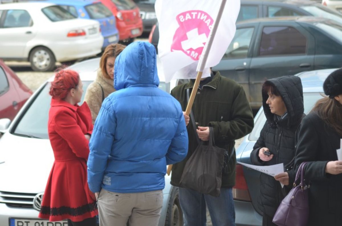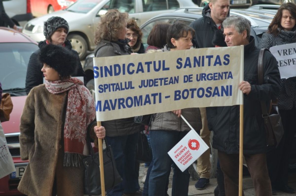 Mai puțin de 30 de persoane din sistemul sanitar au participat la acțiunea de pichetare de joi, 18 februarie 2016. Prima, dintr-o serie întreagă de zile în care angajații spitalului vor veni în fața Consiliului Județean Botoșani cu știutele pancarte sau steaguri în mâini. Astfel de acțiuni, organizate mai ales în preajma unor campanii electorale, se asemănă la modul de organizare de la un protest la altul.