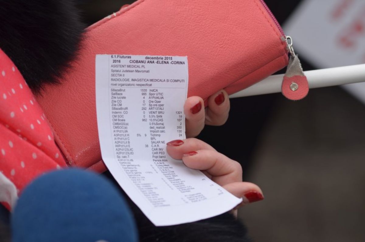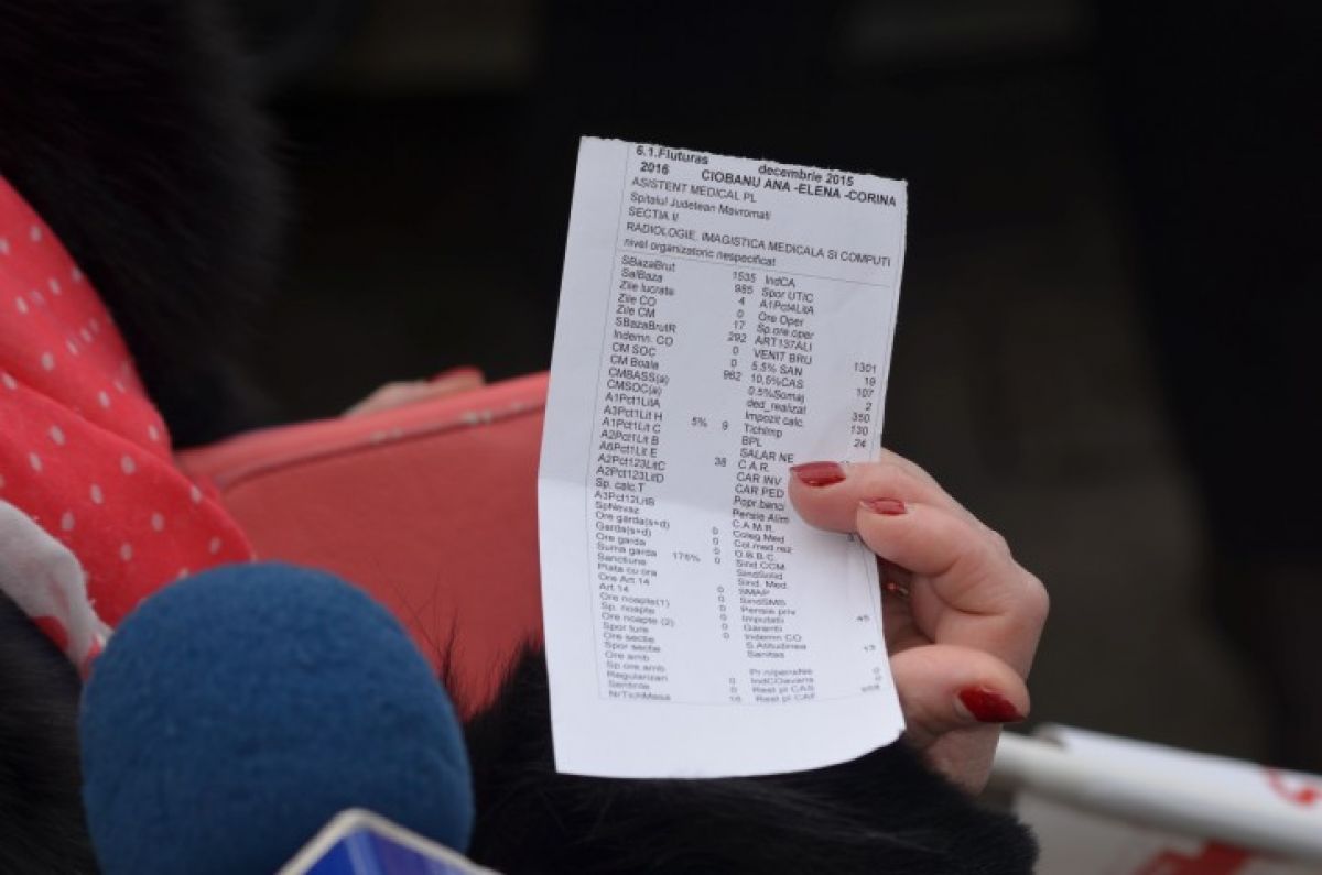 Protestatarele, aflate în asentimentul băiatului cu glugă au izbucnit la adresa mass mediei în privința salariilor ce au fost făcute publice pe pagina electronică a spitalului și în care erau trecute negru pe alb atât lefurile mici cât și cele mari. Au scos de prin genți fluturașii de salarii pentru a demonstra că acestea sunt cu multe zerouri doar în cazul a unora dintre asistenții medicali iar regula nu este una generală.