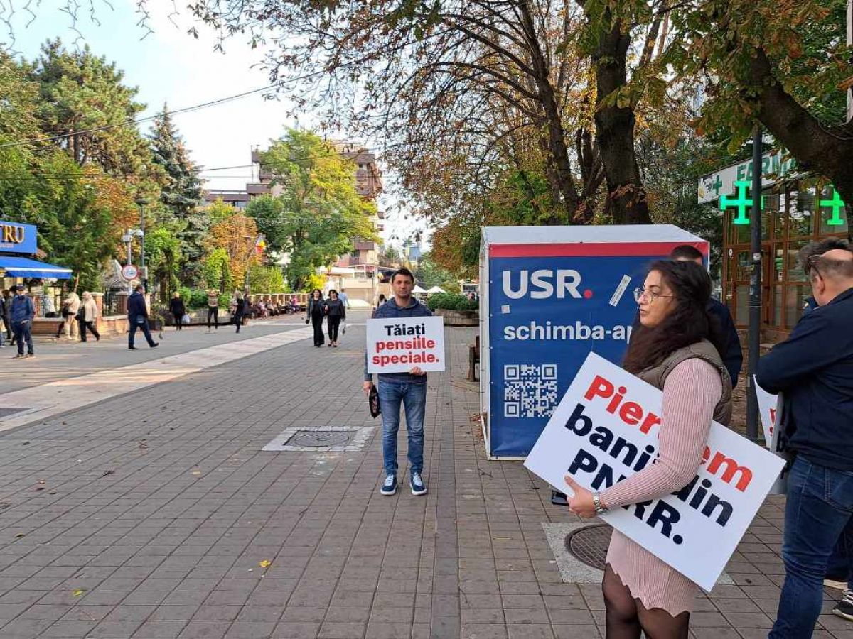 ”Suntem aici în fața Casei Județene de Pensii din Botoșani, de unde a plecat domnul ministru Budăi, cel care ar fi putut salva banii din PNRR. Cel care nu a înțeles că Botoșaniul are nevoie de investiții, de creșterea pensiilor sociale și nu de pensii speciale. În acest județ sunt 10.000 de oameni care trăiesc cu 800 de lei pe lună, pensii de agricultori. Alți 77.000 de oameni trăiesc cu 1600 lei pe lună!