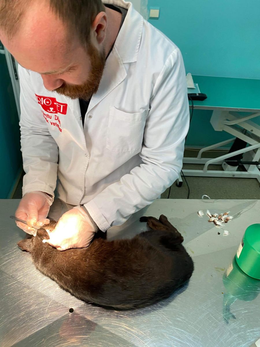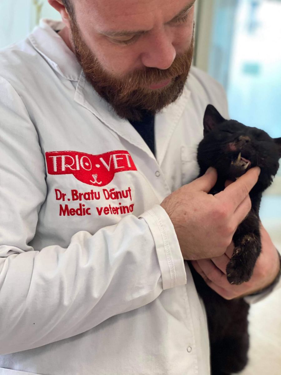 ”Nu știm dacă este o pisică cu proprietar sau nu, însă dacă a avut un proprietar îl rugăm frumos să nu-și mai ia un alt animal niciodată. Pe lângă nefericitul accident în urma căruia s-a ales cu o fractură foarte urâtă de mandibulă, mai rar am văzut o pisică cu o stare fiziologică atât de proastă, plin de paraziți atât interni, cât și externi, nu știm efectiv dacă mai putea auzi la cât de pline îi erau urechile de paraziți auriculari”,