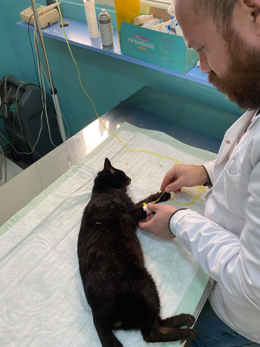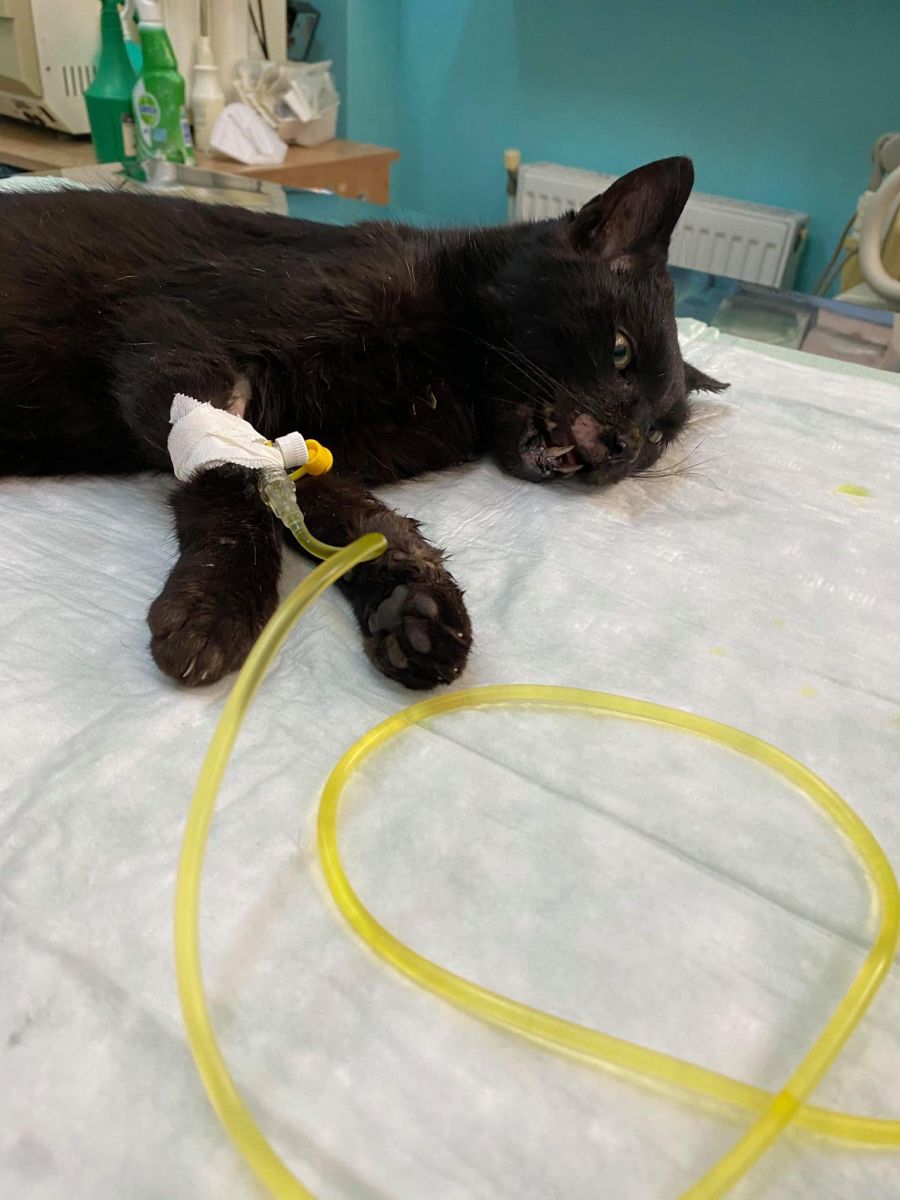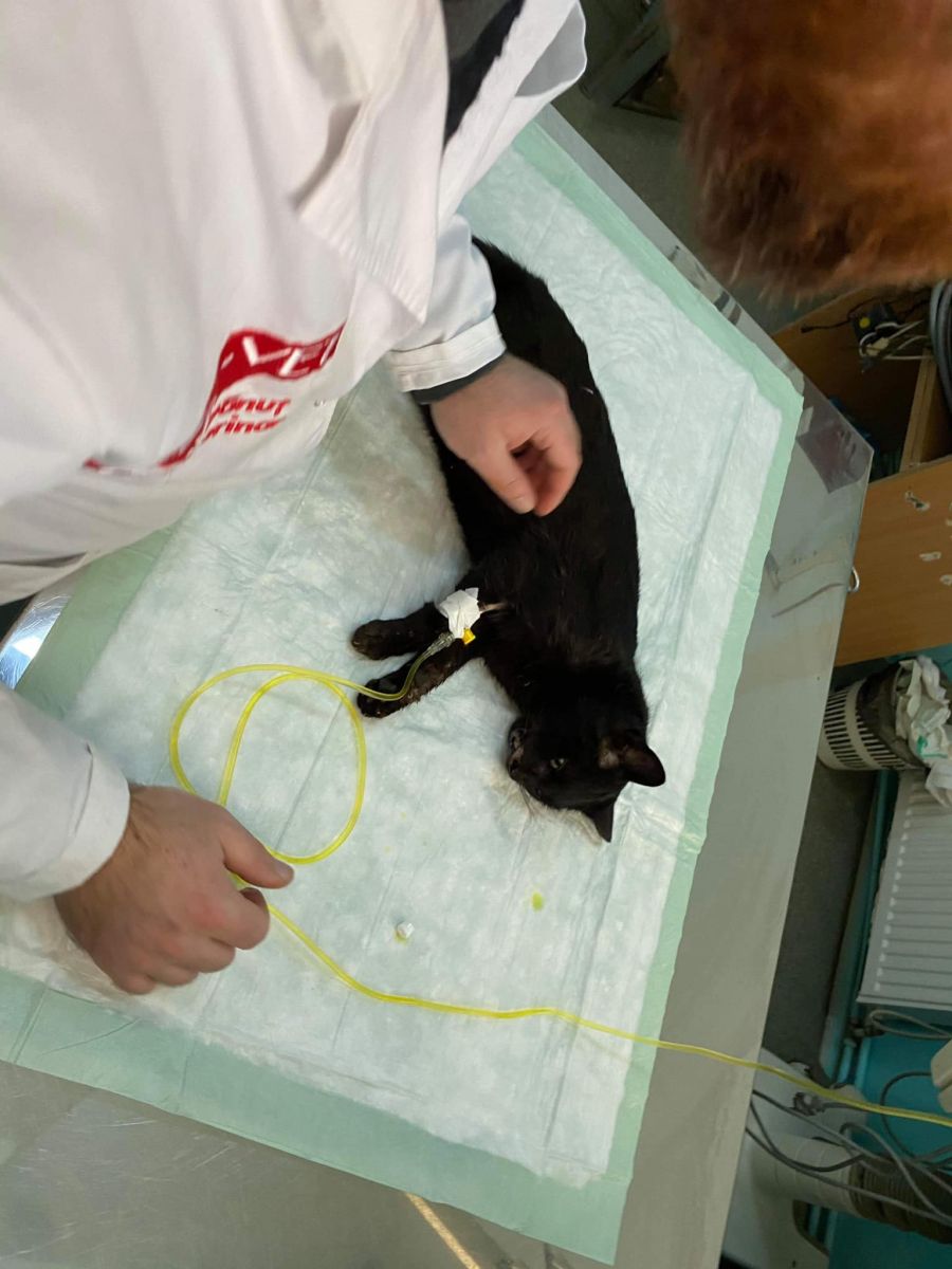 Pisica este salvată, însă a fost o intervenție foarte dificilă și cu costuri enorme.