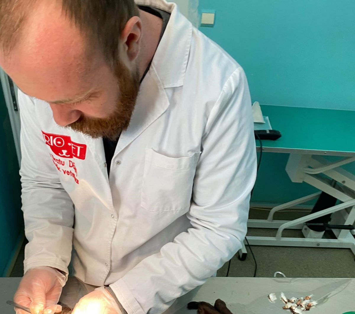 ”L-am operat, i s-a făcut fixație de mandibulă și l-am scăpat de “bagajul “ de paraziți, genul ăsta de cazuri necesită săptămâni sau chiar luni de recuperare, însă evoluează frumos... Nu a mai întrebat nimeni de el deși mâine se face o săptămâna de când a ajuns la noi, nu a interesat pe nimeni dacă mai trăiește sau dacă tot ce facem pentru el nu costă, însă ne-am obișnuit să fie așa…”,