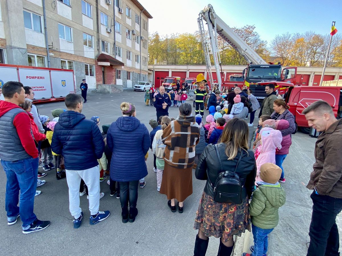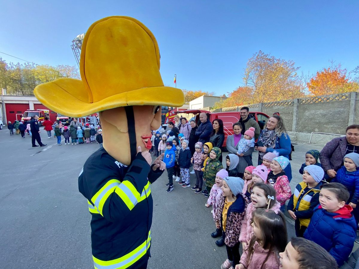 Peste 180 de copii de la Grădinița nr. 6 din municipiul Botoșani, însoțiți de părinți și cadre didactice, au fost astăzi, în vizită la Detașamentul de Pompieri Botoșani, dornici să cunoască activitatea și misiunile instituției.