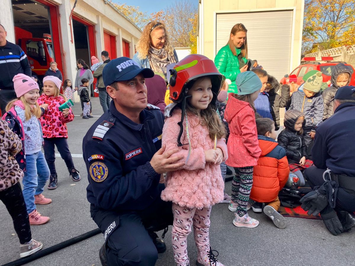 Vizibil emoţionaţi, copiii au îmbrăcat haina de pompier, au urcat în autospecialele de intervenţie și au folosit țeava de refulare. Cei mai îndrăzneți au aflat cum se protejează servanţii pompieri pe timpul incendiilor cu ajutorul aparatului de respirat cu aer comprimat şi a căştii de protecţie. Curajoși au arătat că nu se tem de locurile înalte și au urcat în nacela autospecialei de lucru la înălțime, având deja un atuu dacă își vor dori, pe viitor, să devină pompieri.