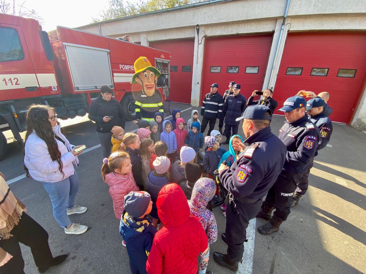 Aceștia au avut ocazia să vadă îndeaproape autospecialele folosite de pompieri în misiunile operative și au aflat informații utile cu privire la modul în care trebuie să se comporte pentru a preveni situațiile de urgență.