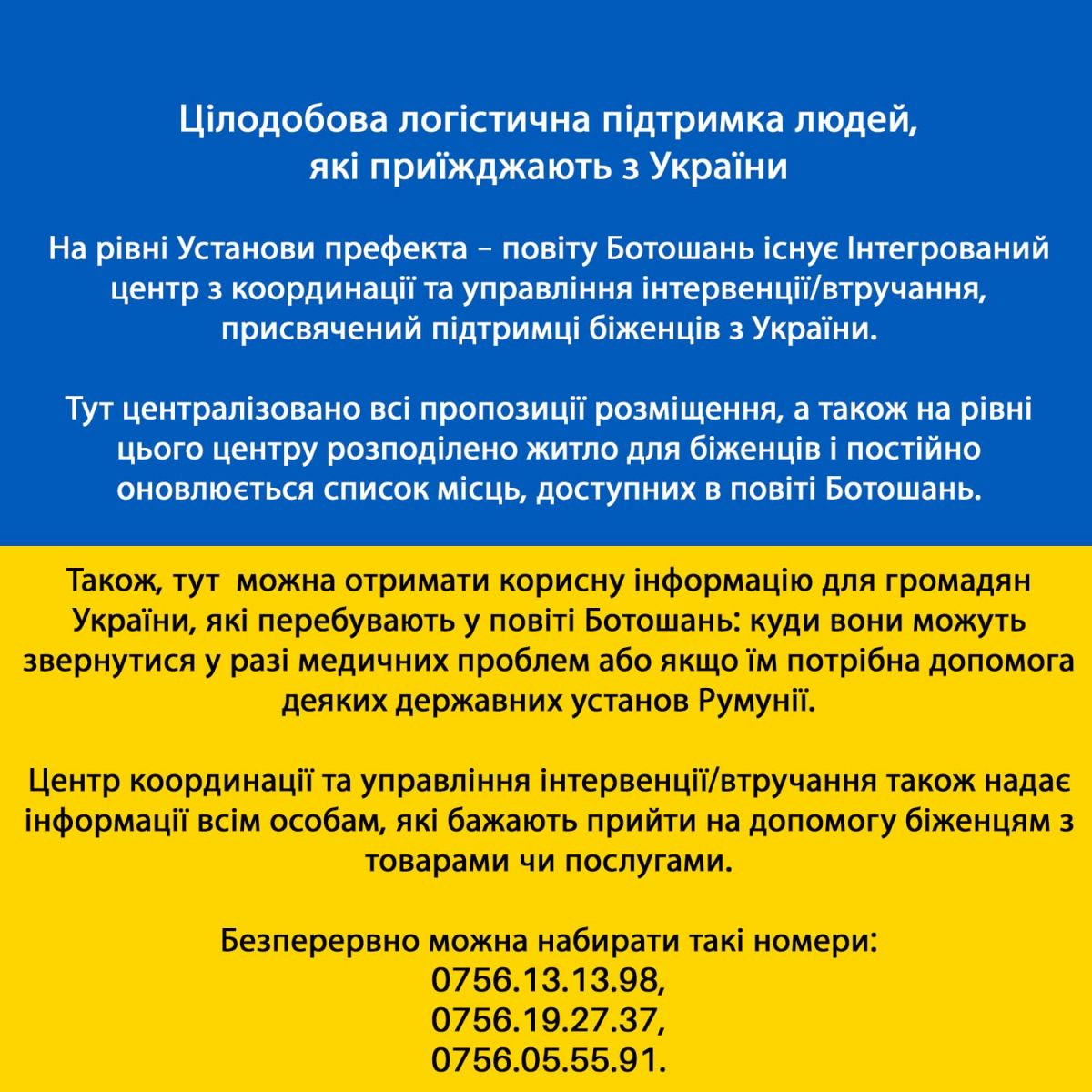 La nivelul județului Botoșani există un centru integrat dedicat sprijinirii refugiaților din Ucraina care funcționează 24/7.