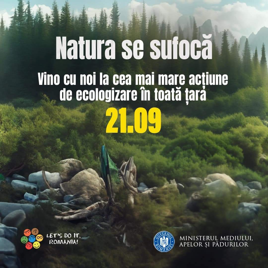 Acțiunea de ecologizare va avea loc sâmbătă, 21 septembrie, ora 9:00, iar punctul de întâlnire este în parcarea Palatului Administrativ.
