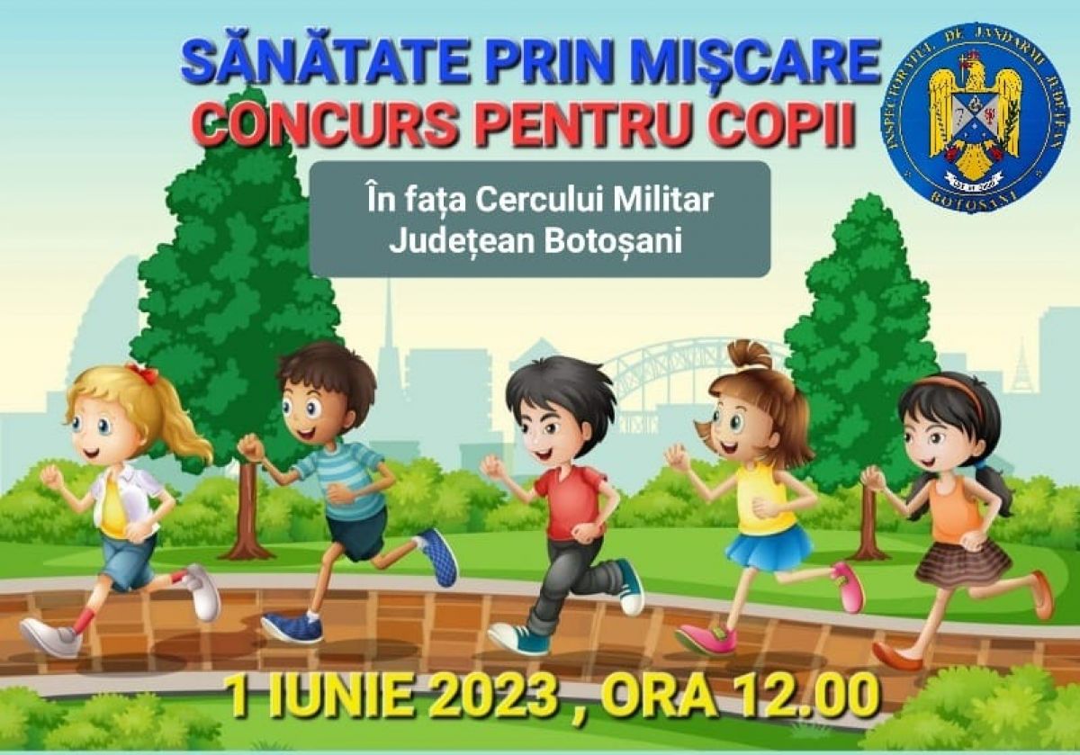În cea mai importantă zi dedicată celor mici, 1 Iunie - Ziua Internațională a Copilului, Inspectoratul de Jandarmi Județean Botoșani va organiza, în colaborare cu Autoritatea Teritorială de Ordine Publică Botoșani, concursul cu premii pentru copii ”Sănătate prin mișcare".
