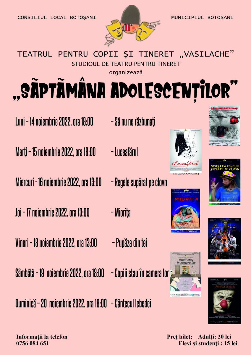 În perioada 14 - 20 noiembrie 2022, tinerii sunt invitați la Teatrul pentru Copii şi Tineret "Vasilache", la Săptămâna Adolescenților.