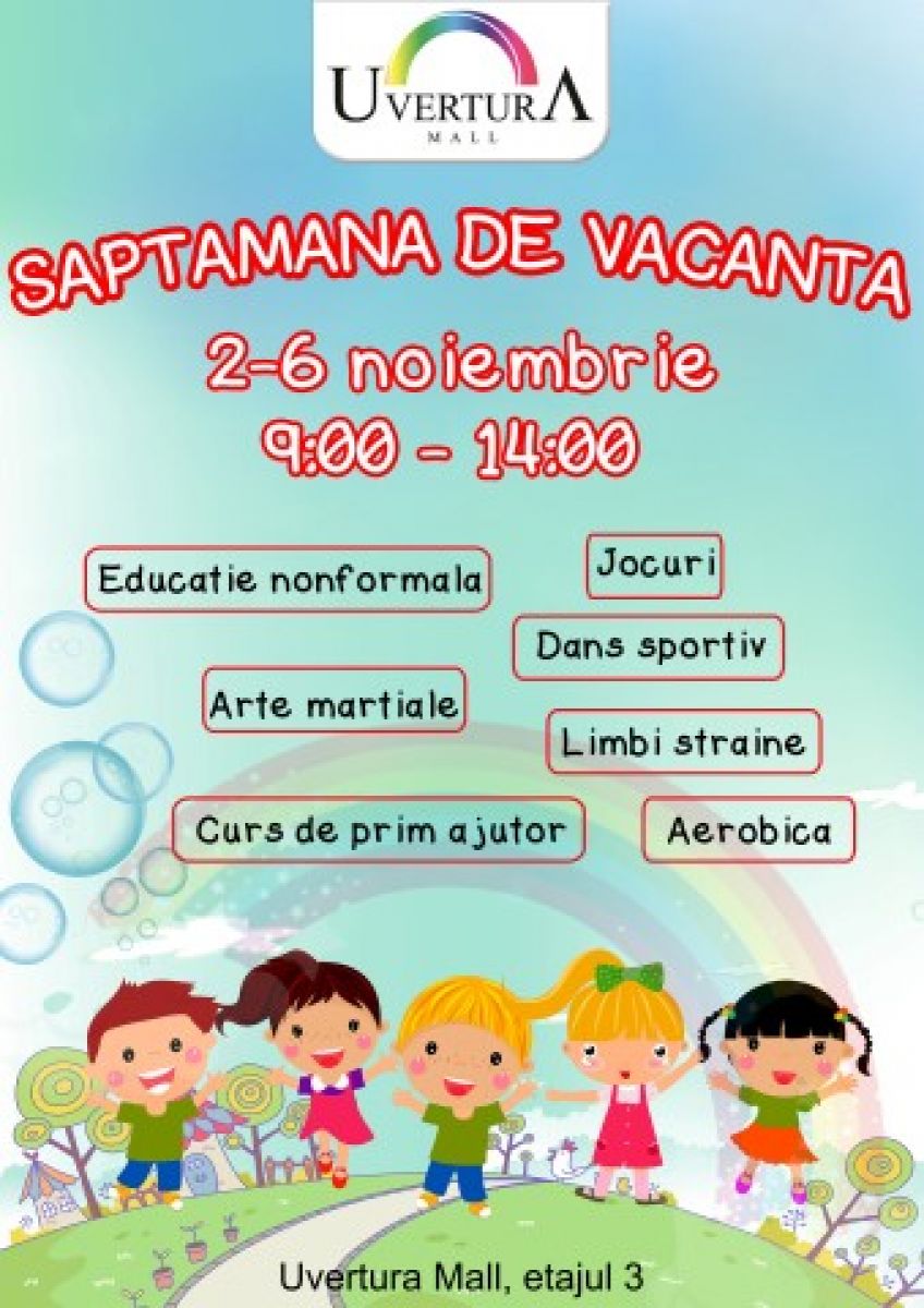 Toţi copiii sunt invitaţi să petreacă cele mai distractive ore, împreună cu un grup de prieteni noi la etajul trei al Uvertura Mall, în cadrul programului ”Săptămâna de vacanță”, inițiat în colaborare cu Fundația ECO-RO-TIN.
