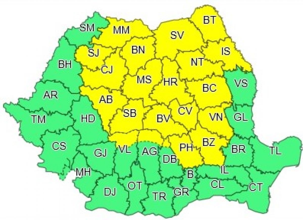 Administrația Națională de Meteorologie a emis, astăzi, o nouă atenționare de tip Cod Galben, valabilă și pentru județul Botoșani.