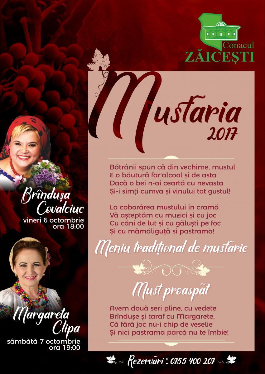 Mustăria 2017 face trimitere la una dintre tradiţiile proprietarilor de vii, care după culesul ciorchinilor, obişnuiau să servească oaspeţii cu must din strugurii proaspăt zdrobiţi.