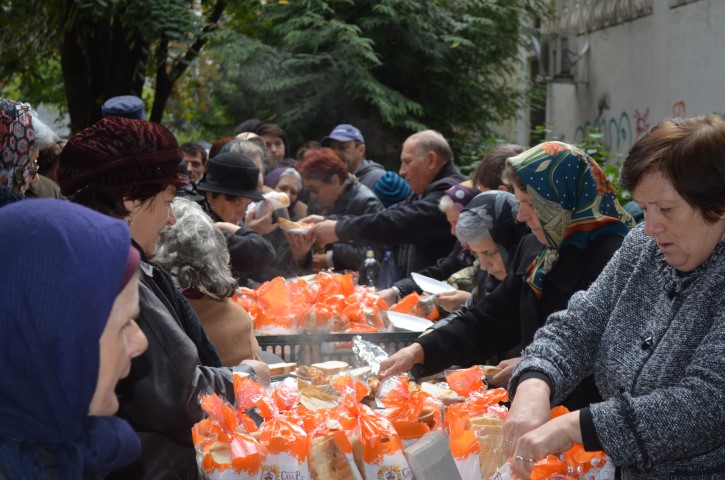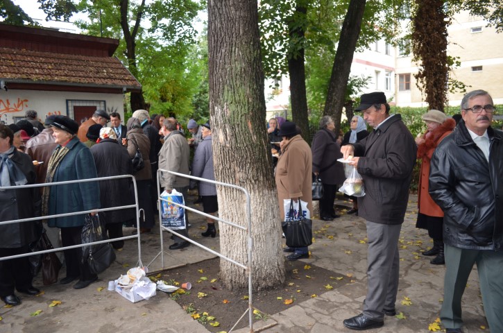 În astfel de momente imaginea cu oamenii necăjiți ai orașului arată dimensiunea sărăciei în care încă trăiesc mulți dintre botoșăneni. Bătrâni care se înghesuiesc pentru două, trei sarmale puse pe o farfurie de plastic, lângă două felii de pâine și un păhărel de vin, oferite de credincioșii cu suflet, de pomană.