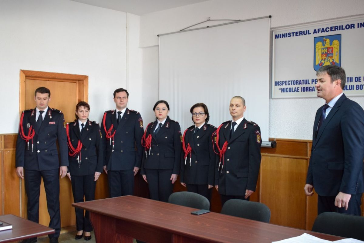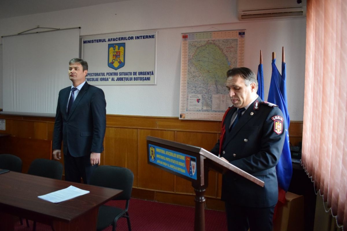 Ceremonia de depunere a jurământului a avut loc în prezenţa prefectului Dan Şlincu şi a şefilor IJSU Botoşani, la sediul unităţii.